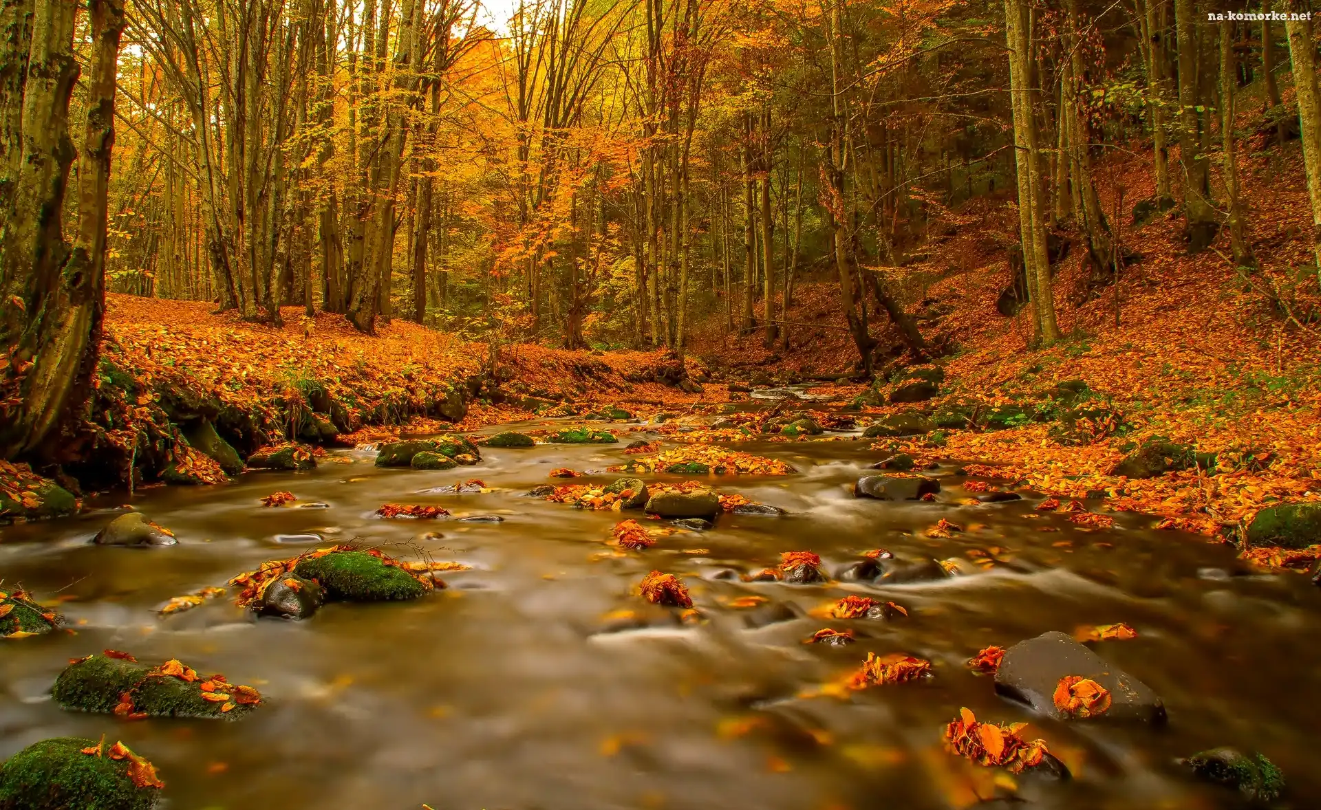 Las, Liście, Jesień, Rzeka na Komórkę