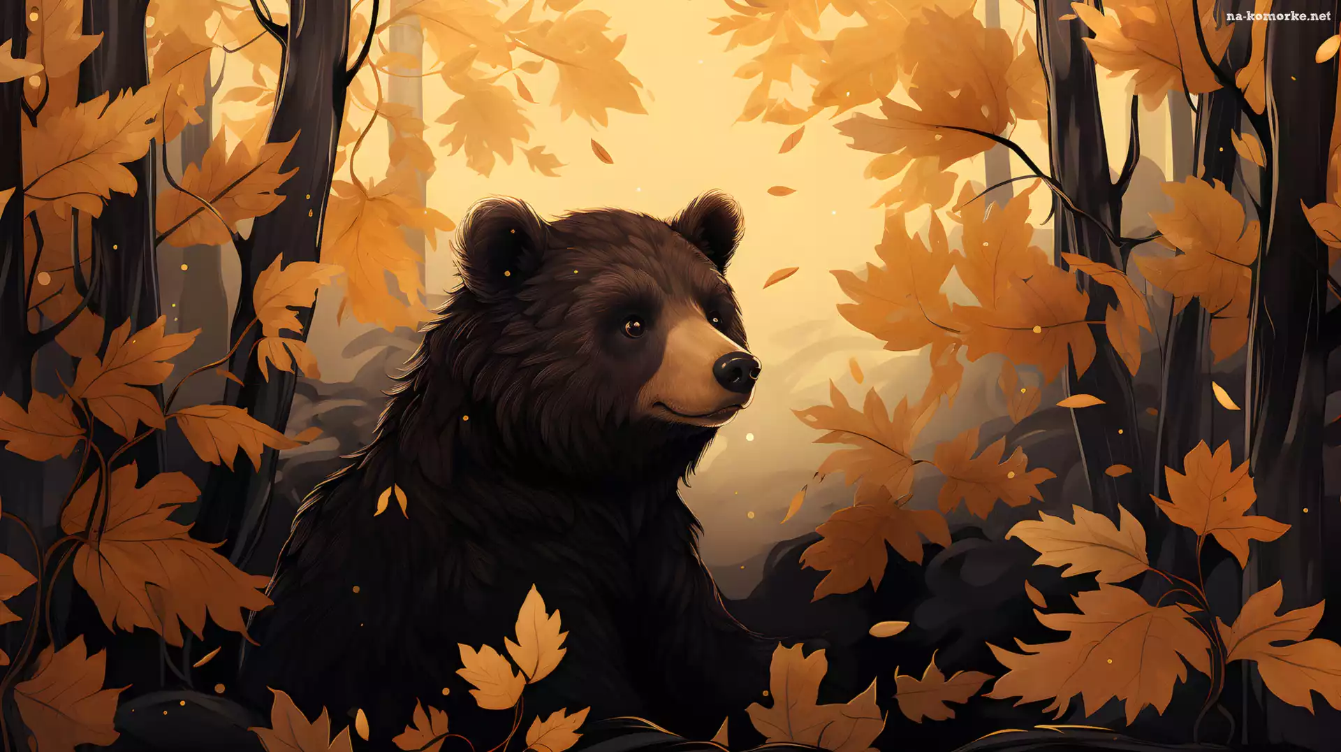 Jesień, Grafika, Niedźwiedź, Las na Komórkę