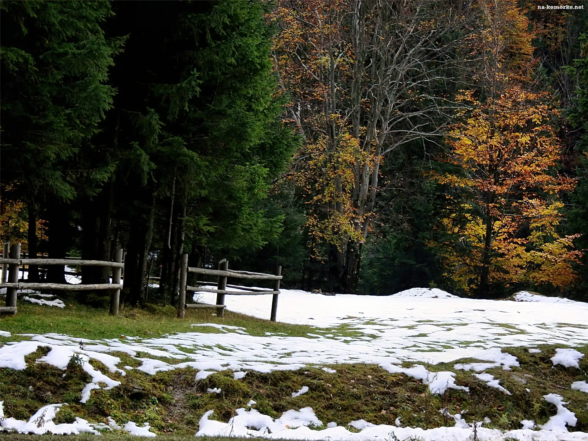 Las, Śnieg, Jesień, Pierwszy na Komórkę