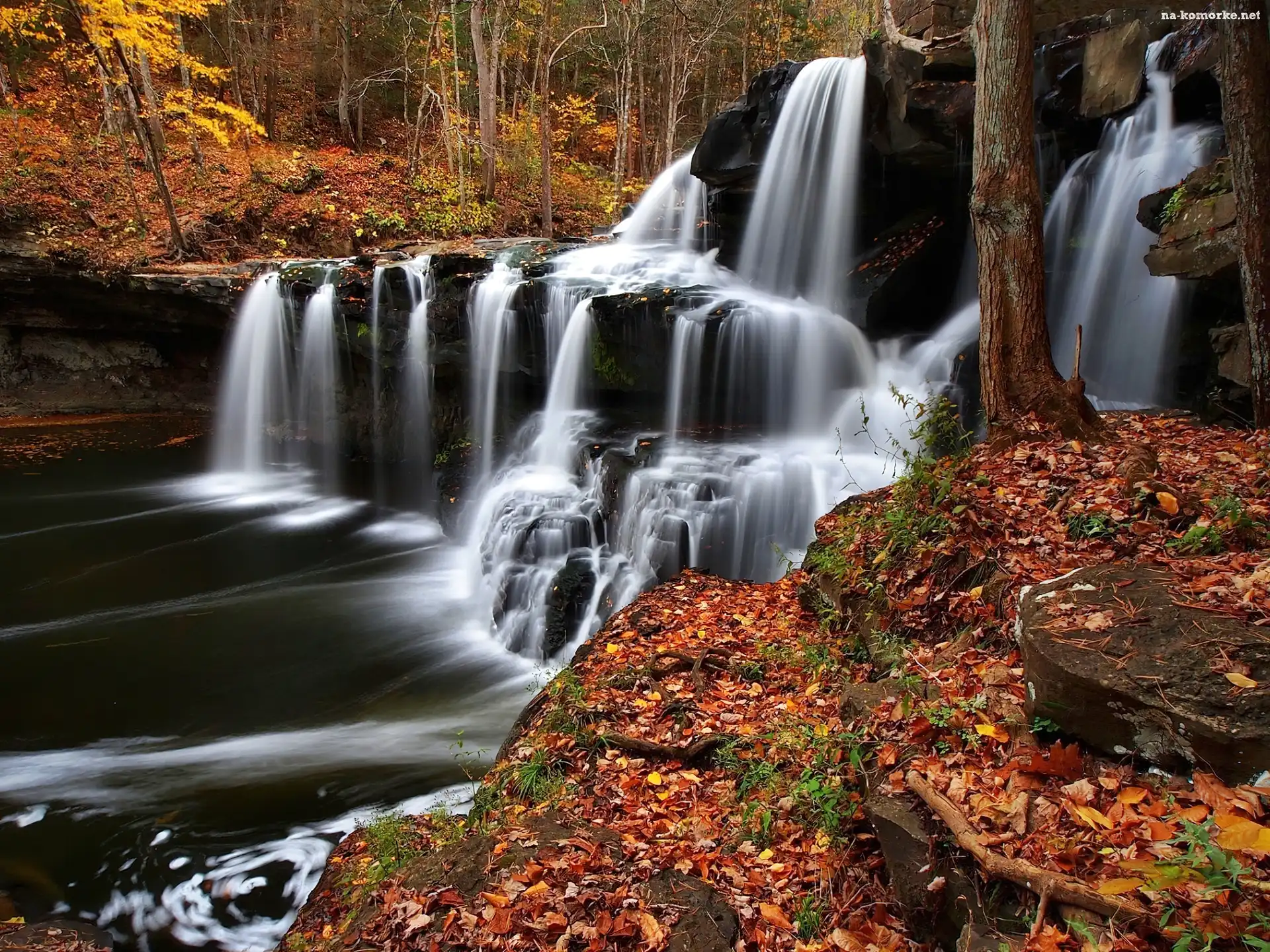 , Wodospad, Woda Las, Jesień, Liście Wodospady, Tęcza