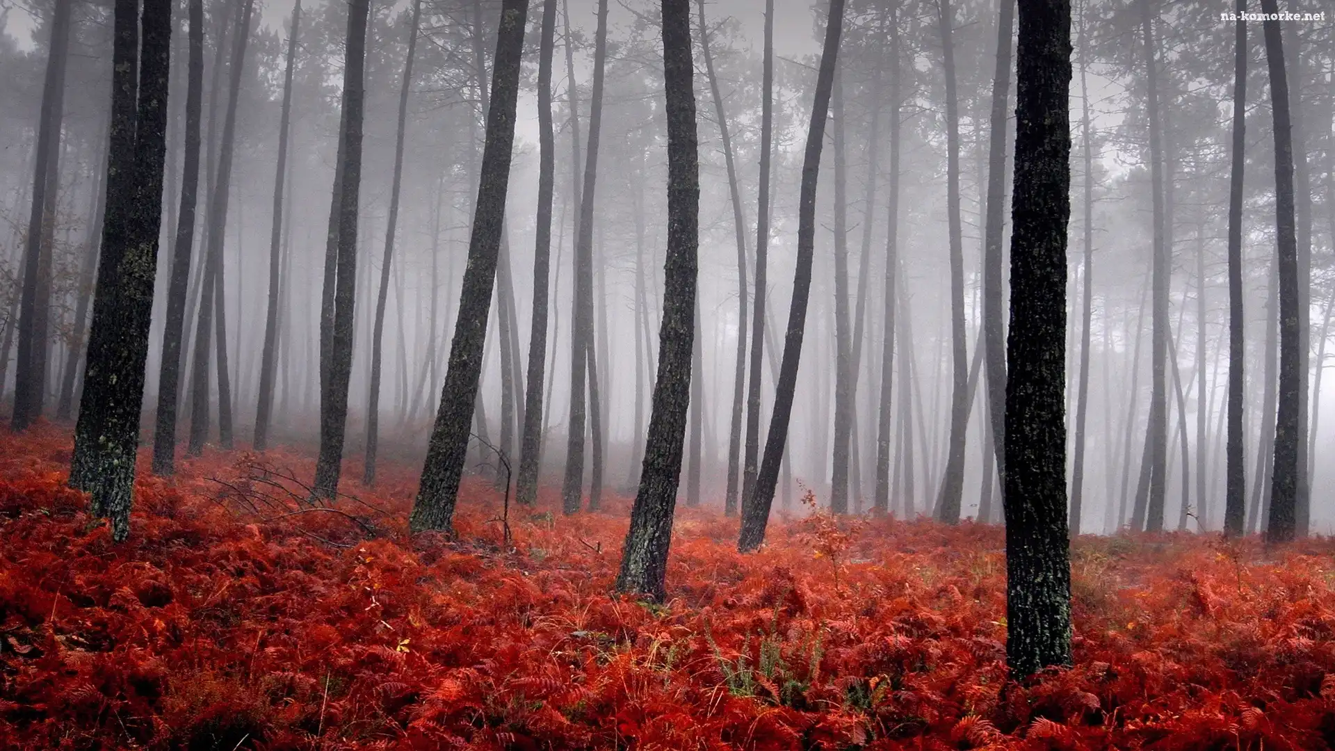 Las, Runo, Jesienią, Czerwone na Komórkę