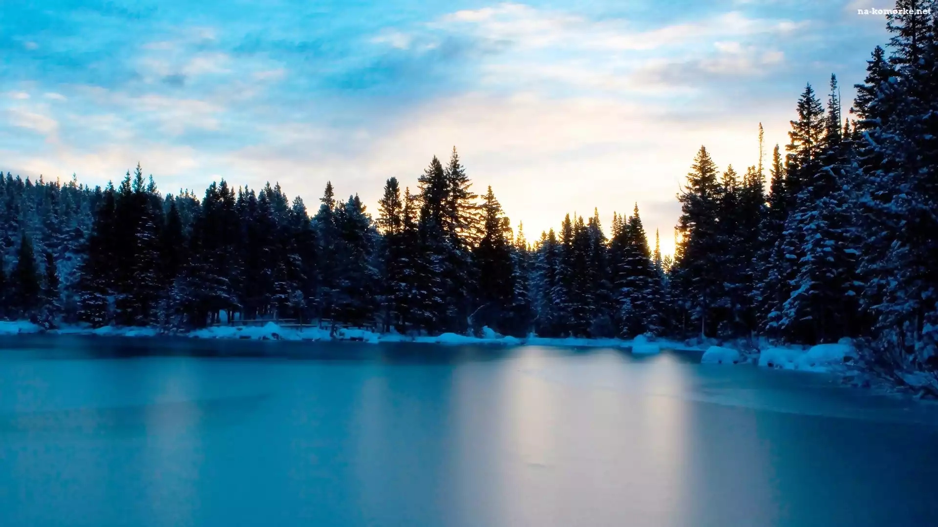 Świt, Jezioro, Las, Zamarznięte na Komórkę