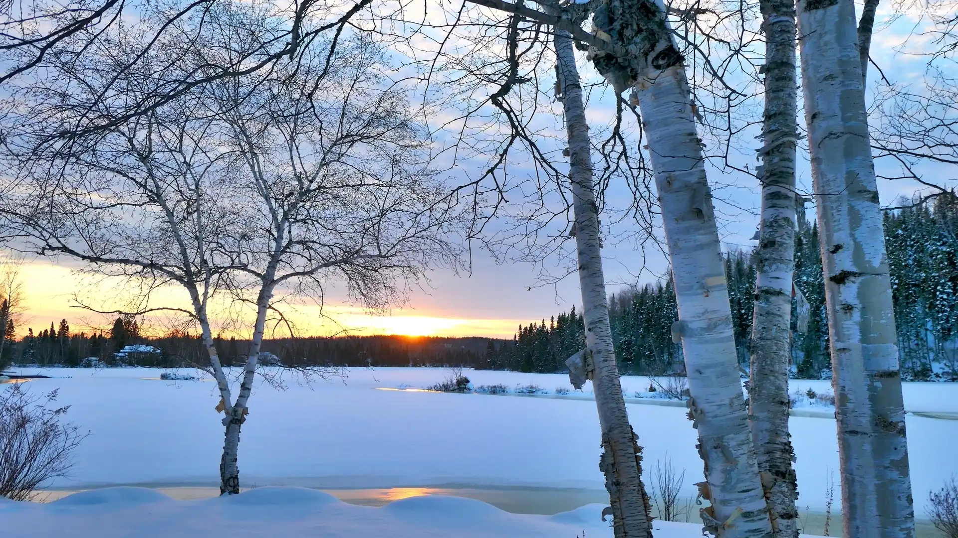 Las, Zaśnieżone, Zima, Brzozy, Jezioro, Drzewa na Komórkę