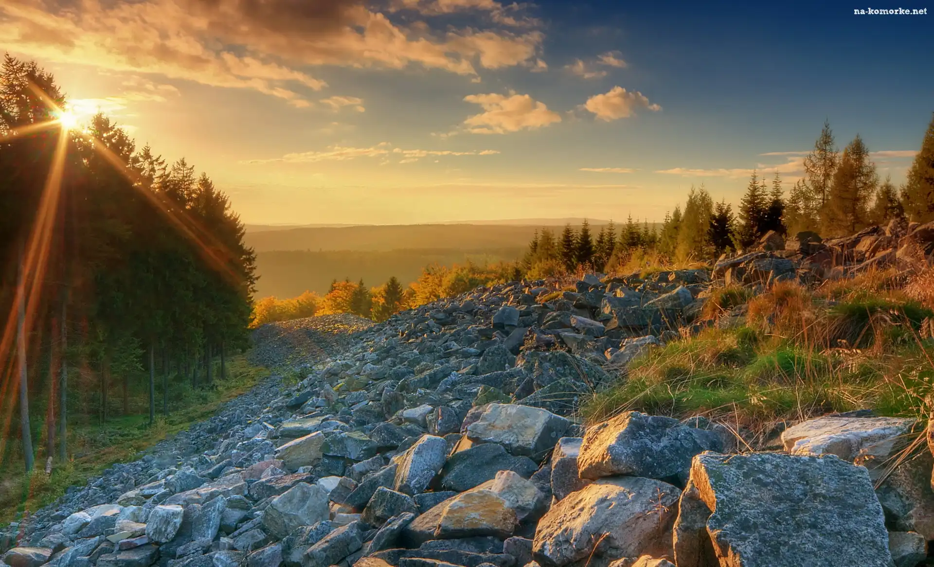 Las, Słońca, Kamienie, Promienie na Komórkę