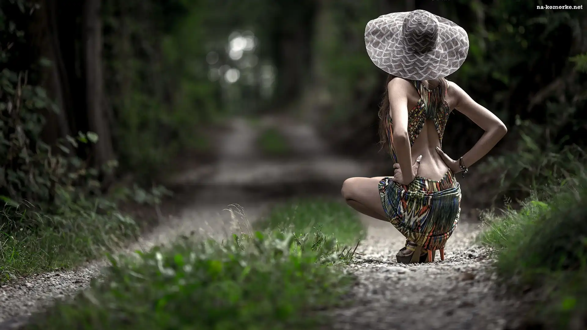 Kobieta, Las, Droga, Figura, Kapelusz, Styl, Moda na Komórkę