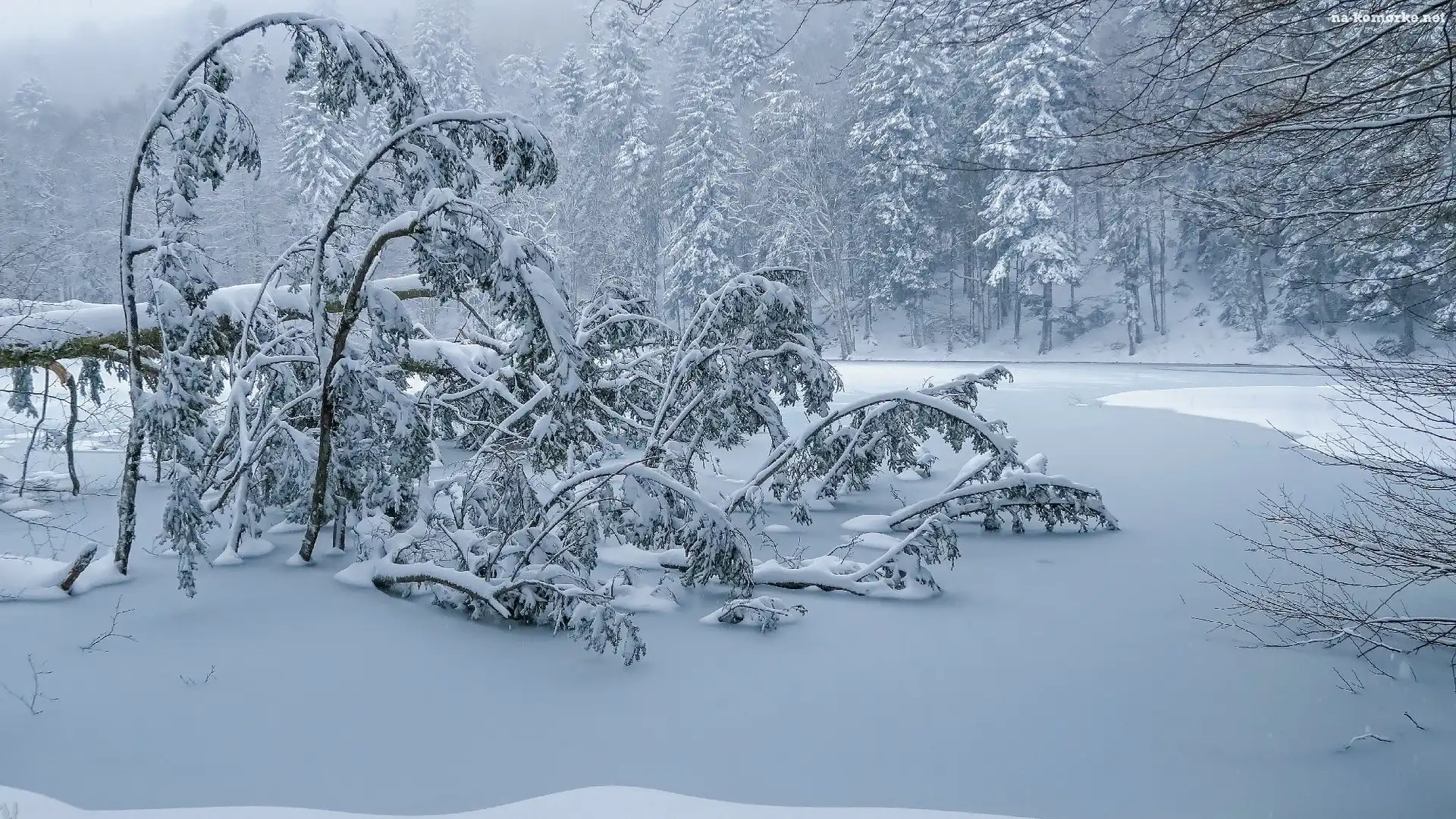 Las, Ośnieżone, Drzewa, Krzewy, Zima na Komórkę