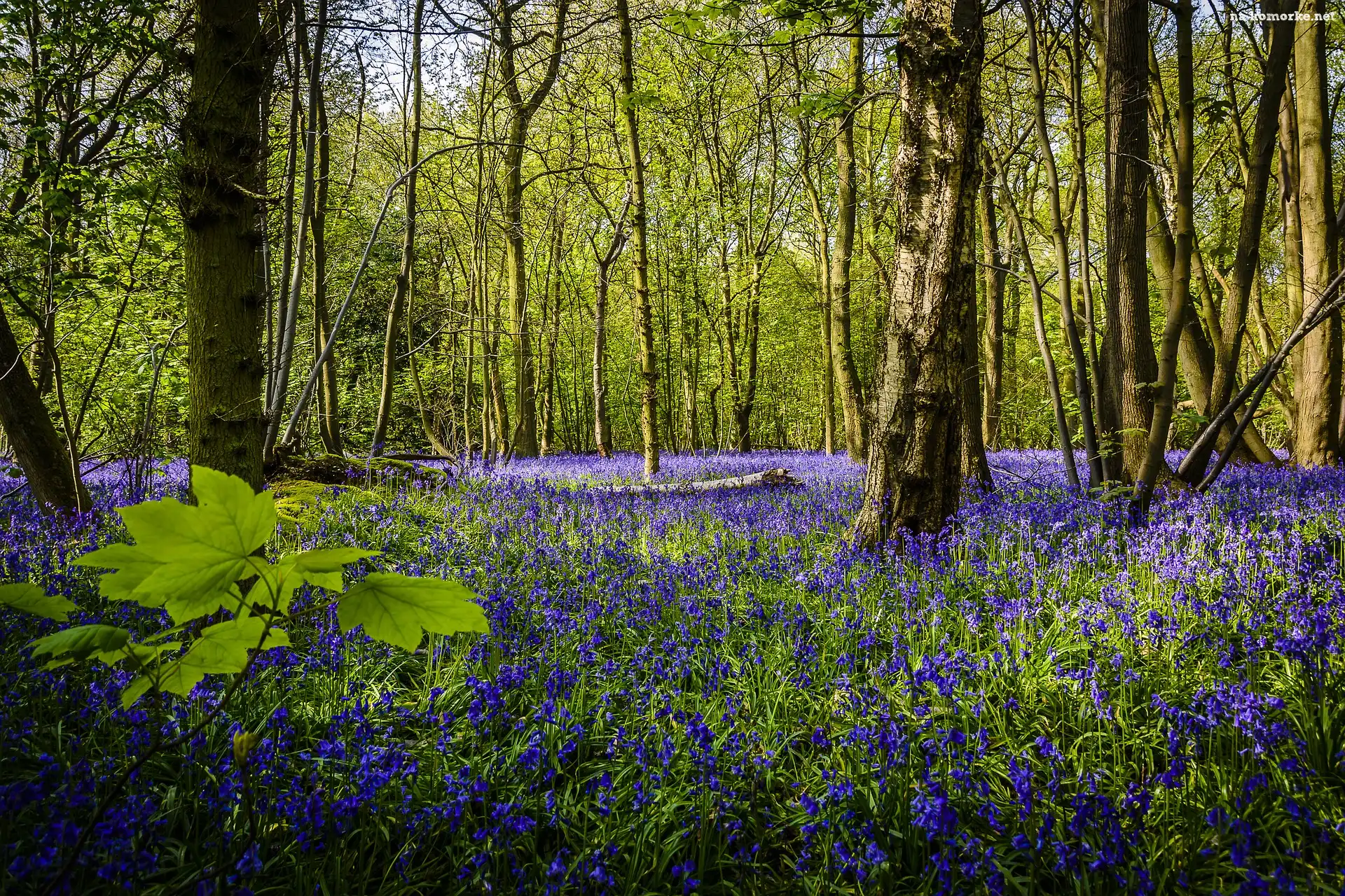 Kwiaty, Las, Wiosna, Hiacyntowiec zwyczajny, Drzewa, Niebieskie na Komórkę