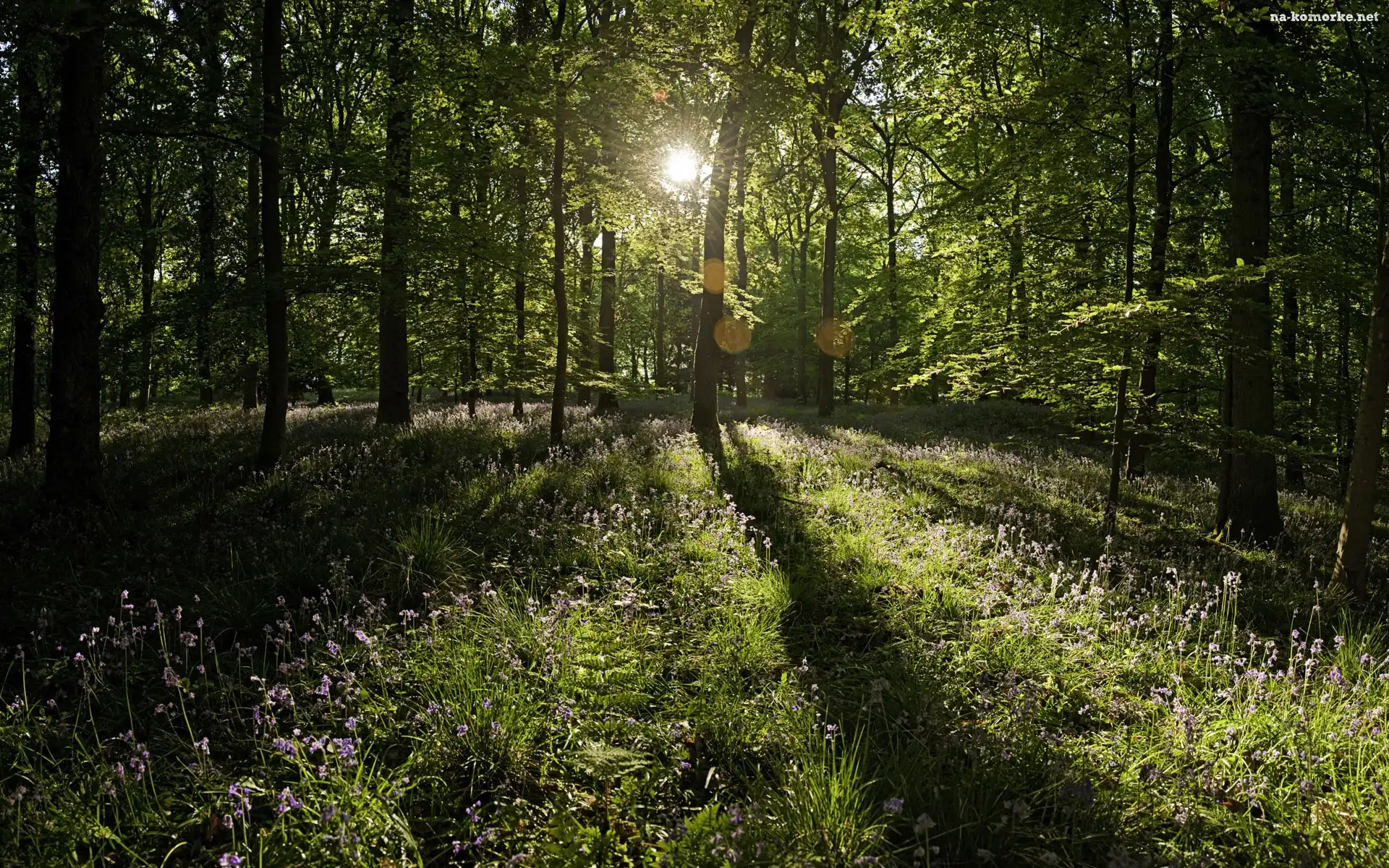 Las, Słońce, Kwiaty, Przebijające na Komórkę