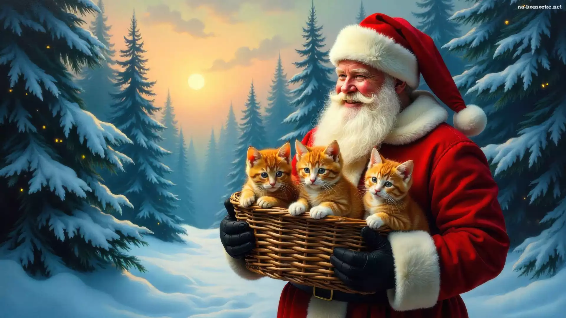 Koty, Zima, Rude, Las, Koszyk, Mikołaj na Komórkę