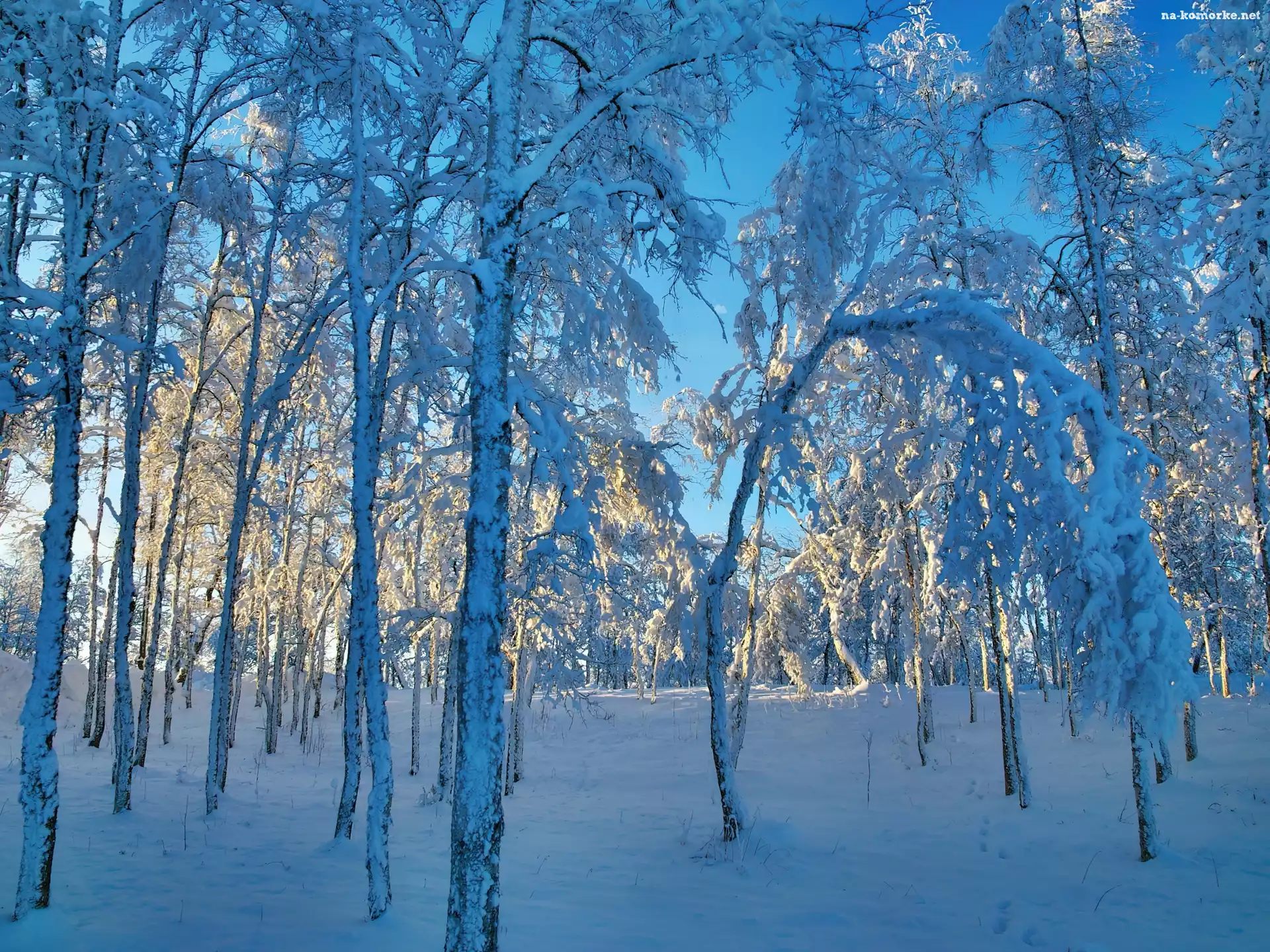 Las, Poranek, Ośnieżone, Drzewa na Komórkę