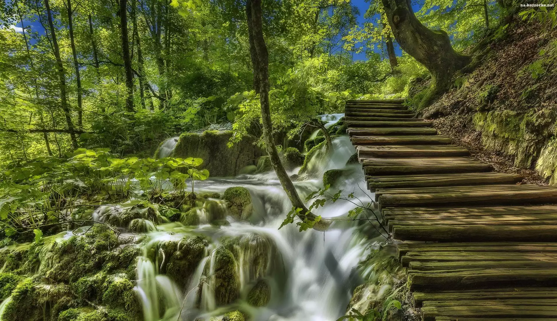 Chorwacja, Schodki, Las, Roślinność, Park Narodowy Jezior Plitwickich, Wodospad, Mech, Drewniane na Komórkę |