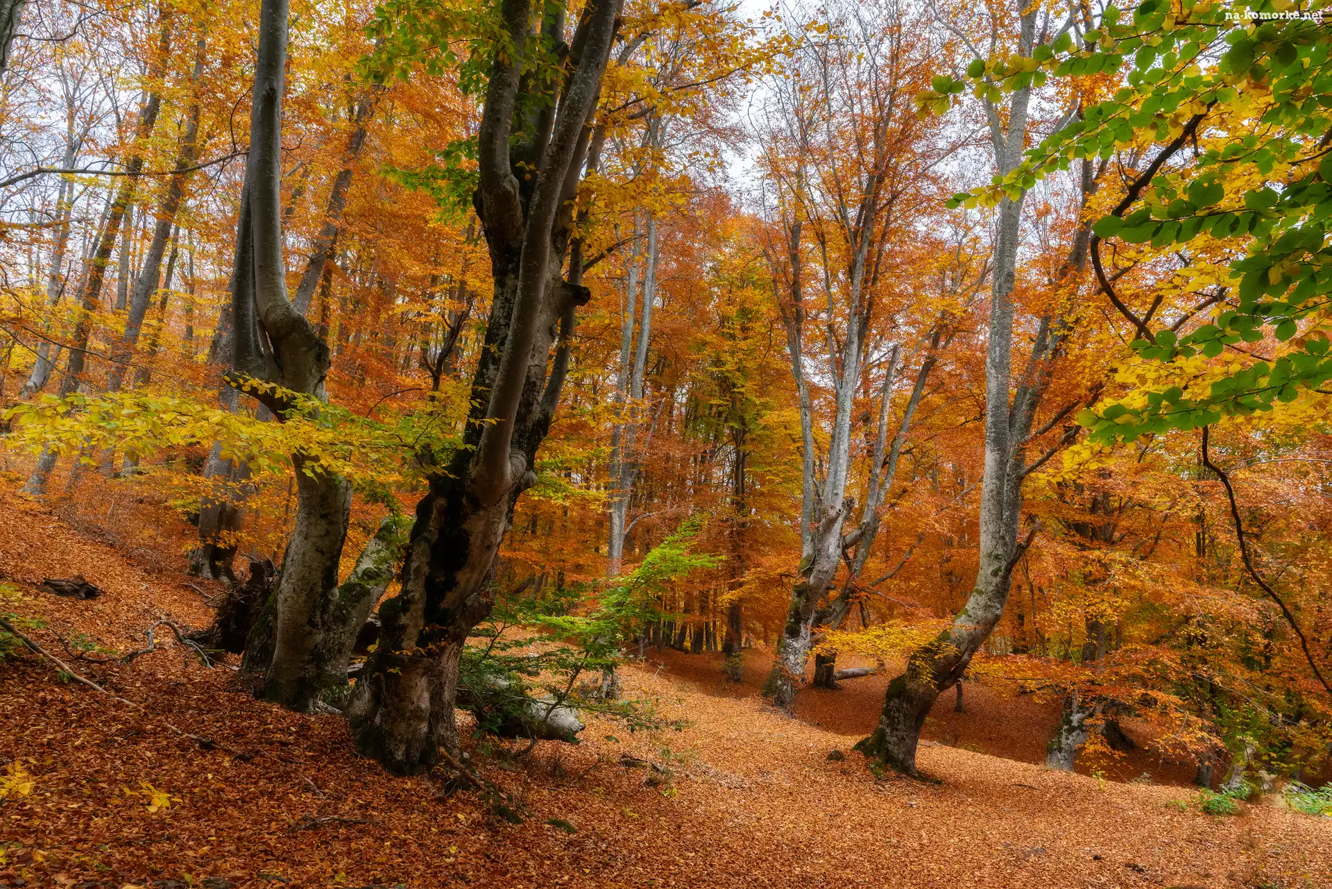 Liście, Jesień, Opadłe, Las, Drzewa, Pożółkłe na Komórkę
