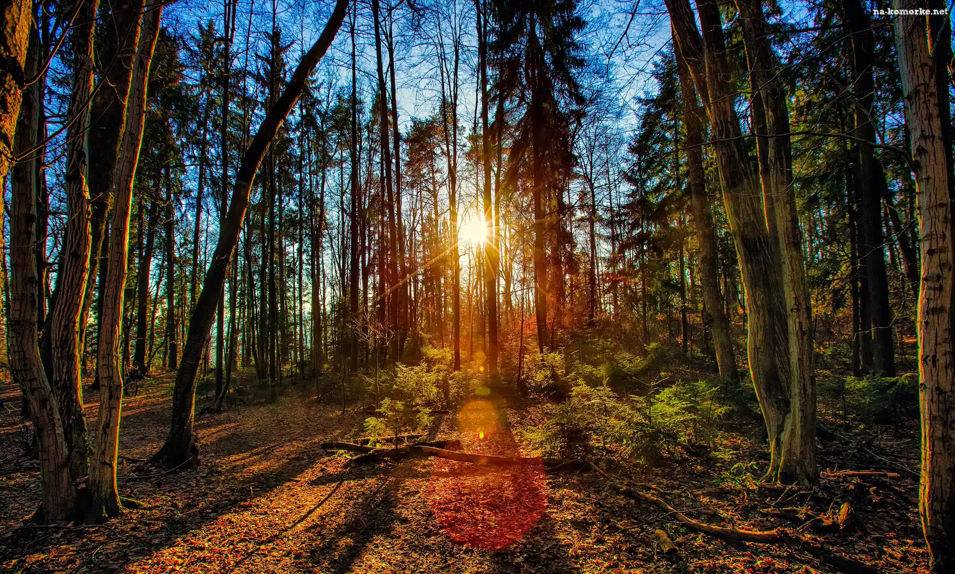 Las, Drzewa, Promienie, Słońca na Komórkę