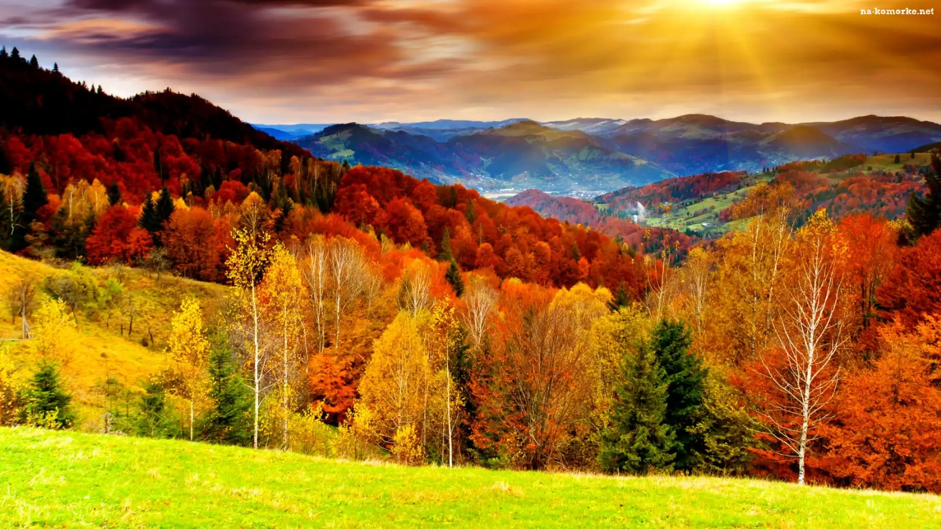 Las, Jesień, Promienie, Słońca na Komórkę