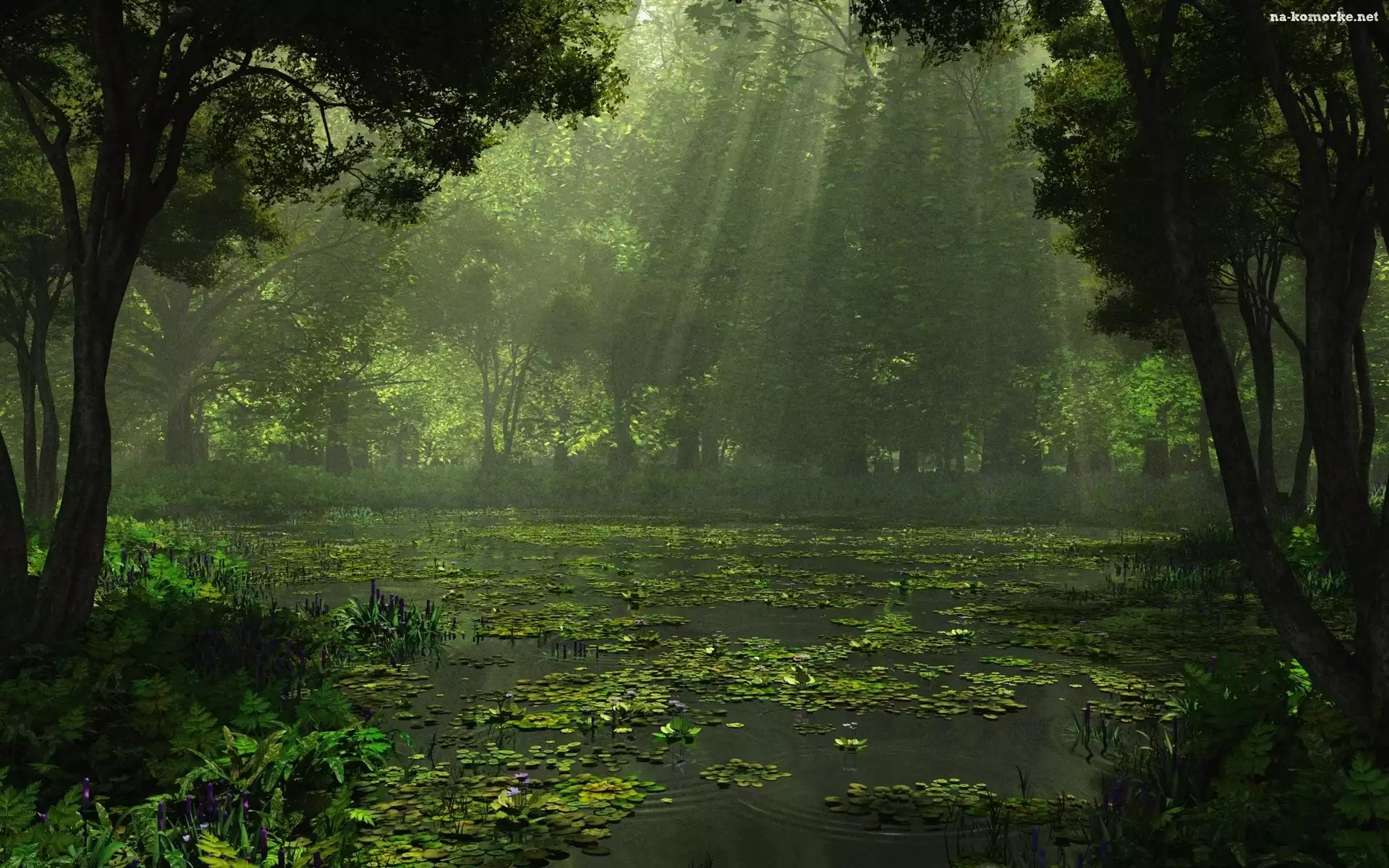 Las, Woda, Promienie, Słoneczne na Komórkę