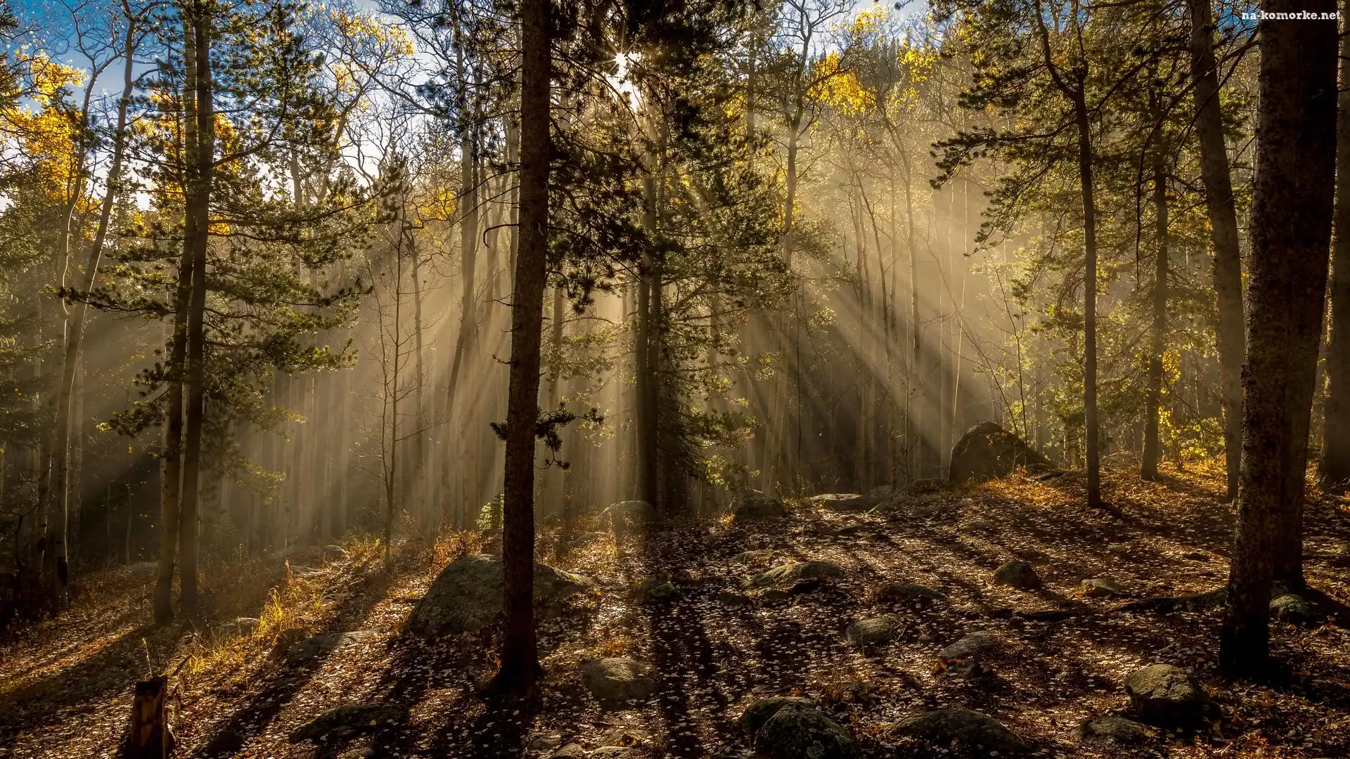 Las, Kamienie, Drzewa, Przebijające światło na Komórkę