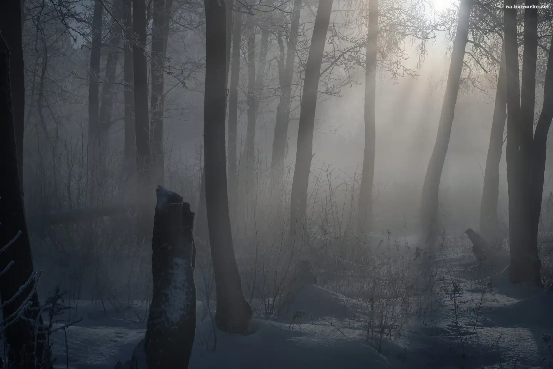 Las, Mgła, Zima, Przebijające światło na Komórkę