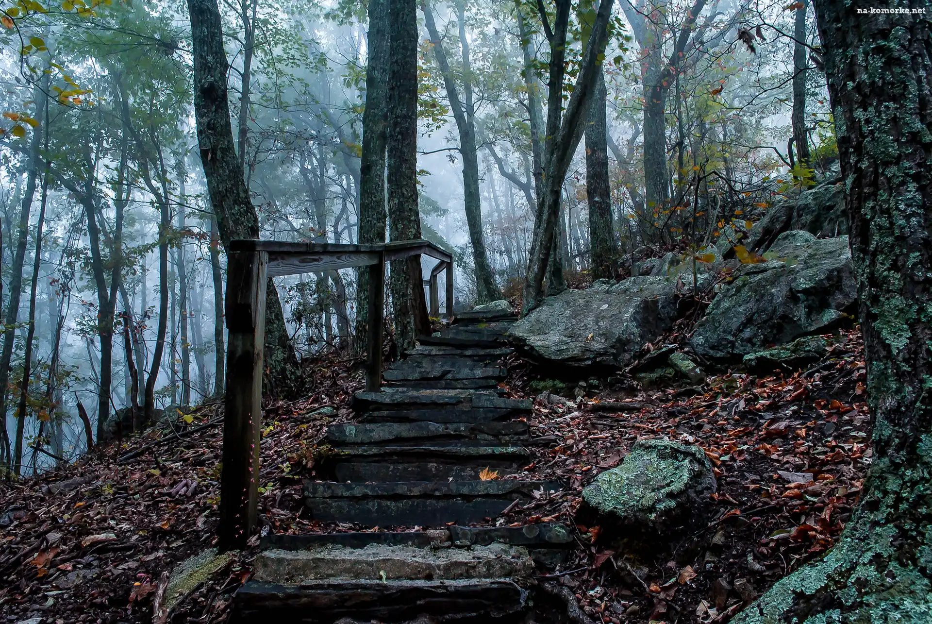 Las, Liście, Schody, Kamienie na Komórkę