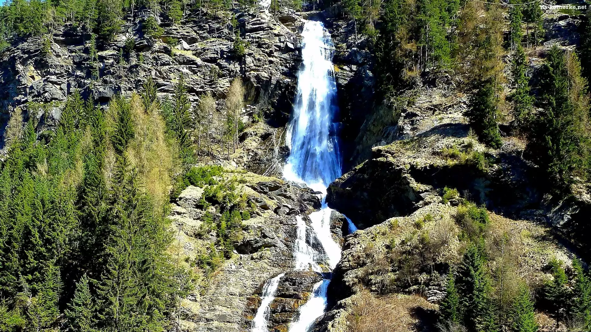 Las, Alpy, Góry, Tyrol, Skały, Wodospad na Komórkę