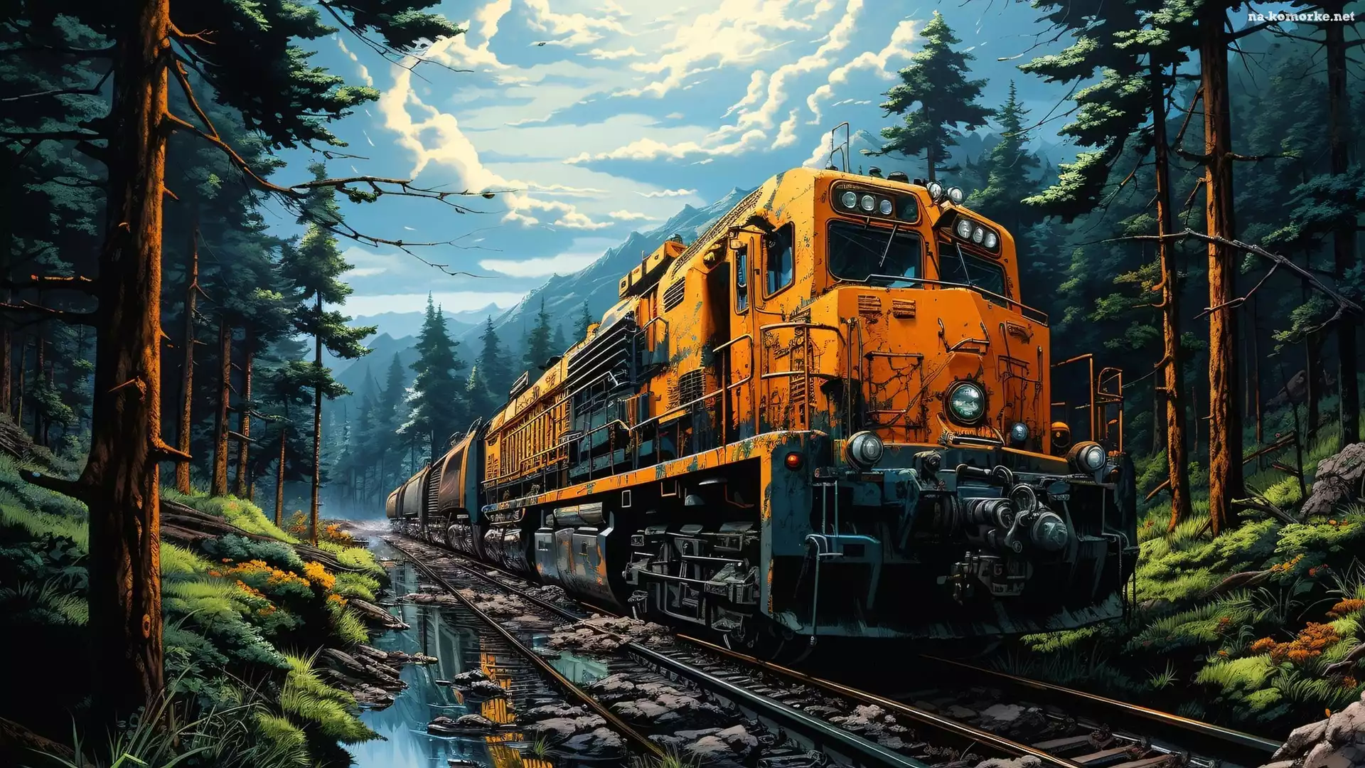 Pociąg, Rośliny, Spalinowa, Grafika, Tory, Góry, Lokomotywa, Las na Komórkę