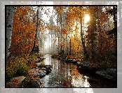 Strumień, Drzewa, Jesień, Las na Komórkę