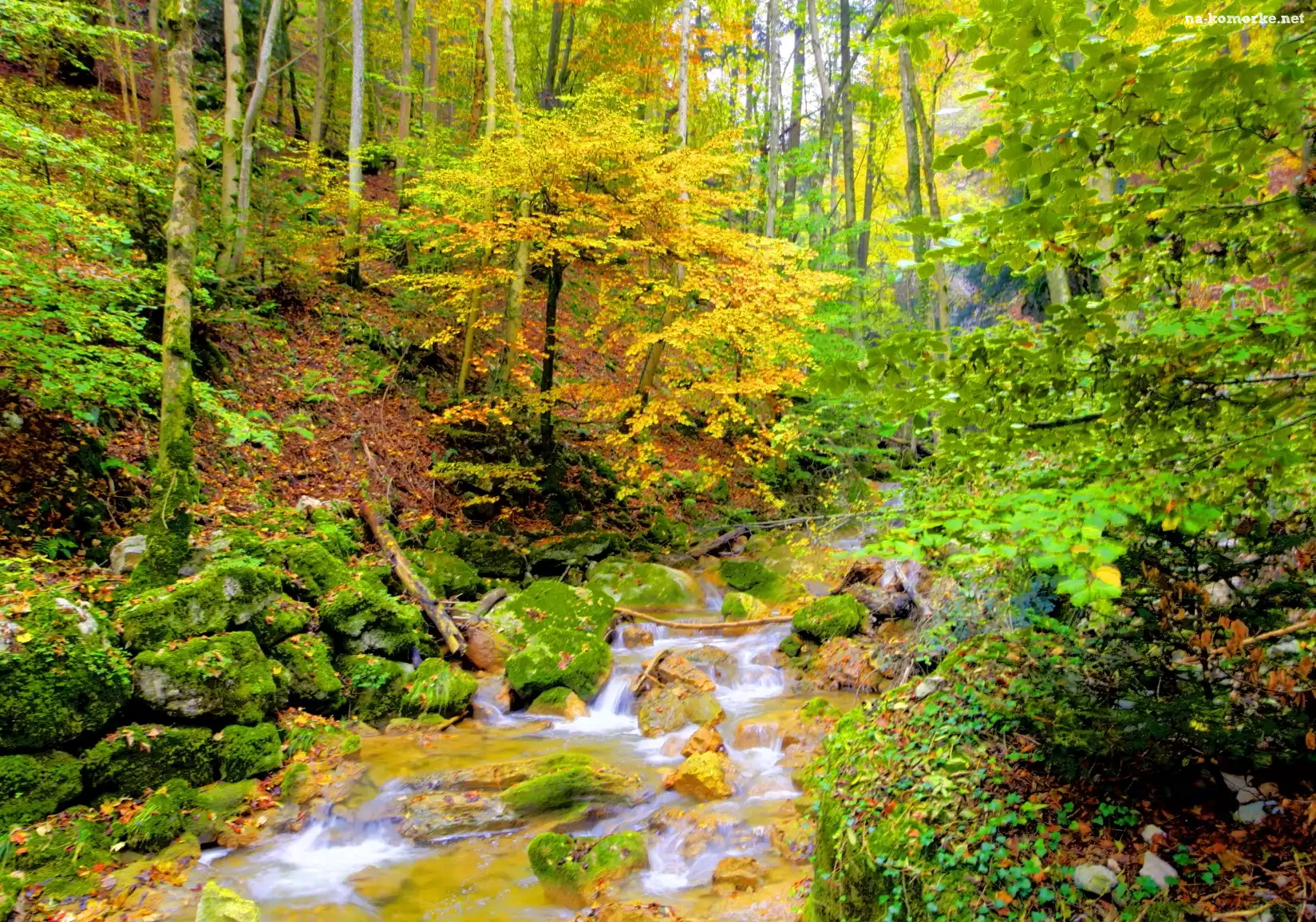 Las, Jesień, Strumyk, Drzewa na Komórkę