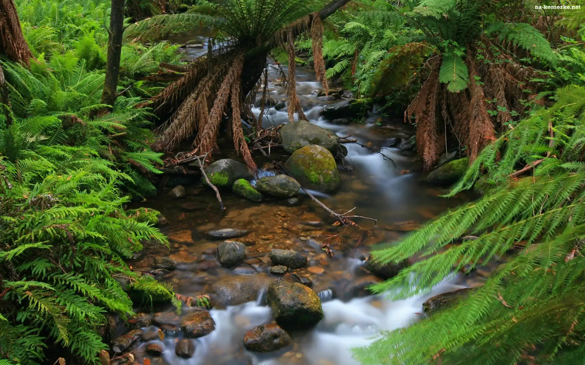 Koryto, Rzeki, Zima Wodospad, Zbocze, Góry Niebo, Kamienie, Chmury, Fale Ściółka, Gęsty, Las, Drzewa, Zielona Brzeg, Morza, Kamienie Liście, Paproci Paproć, Strumienie, Słońca Zachód, Kamienie, Słońca, Rzeka Storczyki, Paprocie, Grafika Kamienie, Kaskady, Woda, Małe Zarośnięty Las Las, Słońca, Przebijające, Promienie Runo, Leśne, Paprotka Paprocie, Ogród