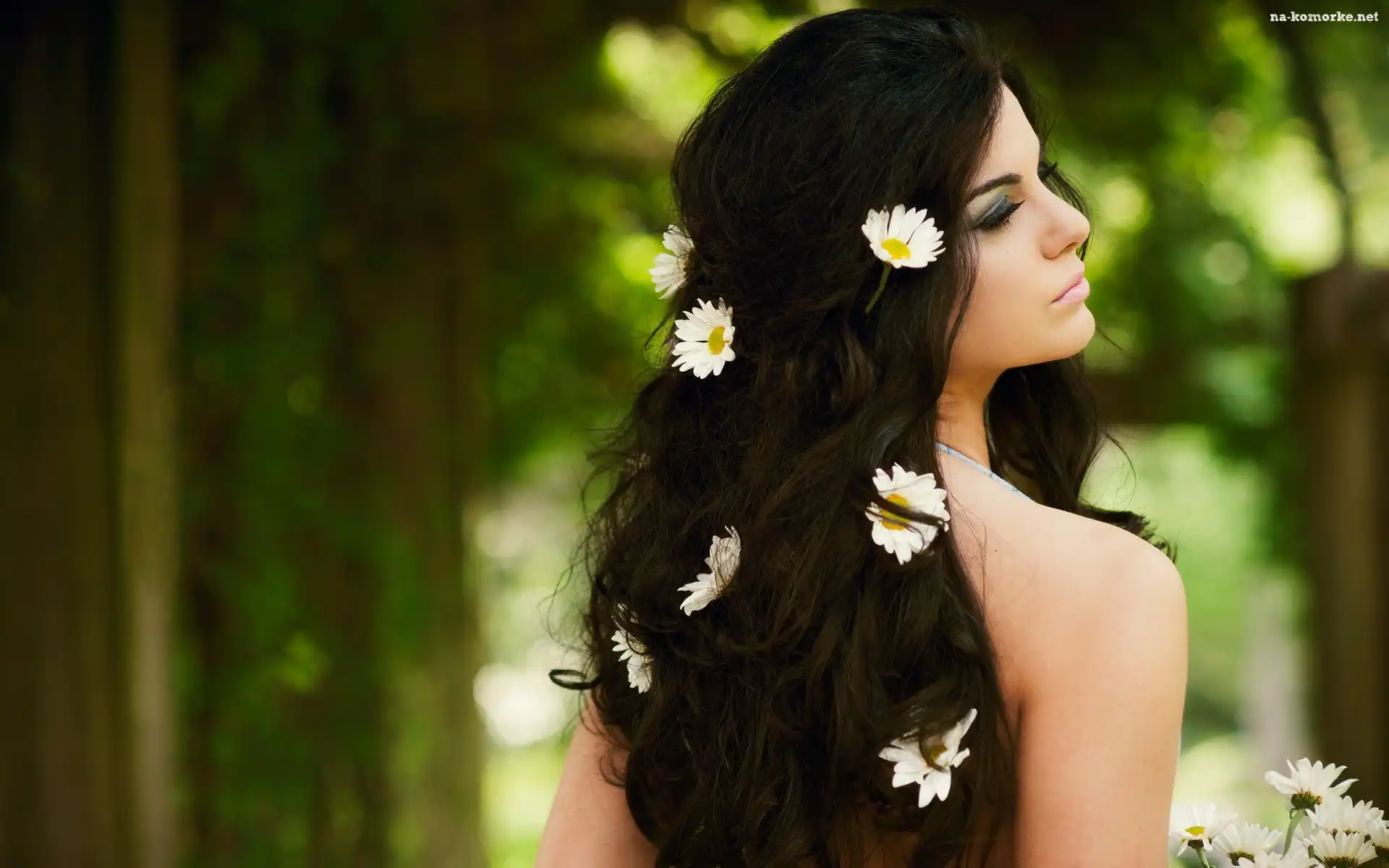 Las, Kobieta, Kwiaty, We, Włosach na Komórkę