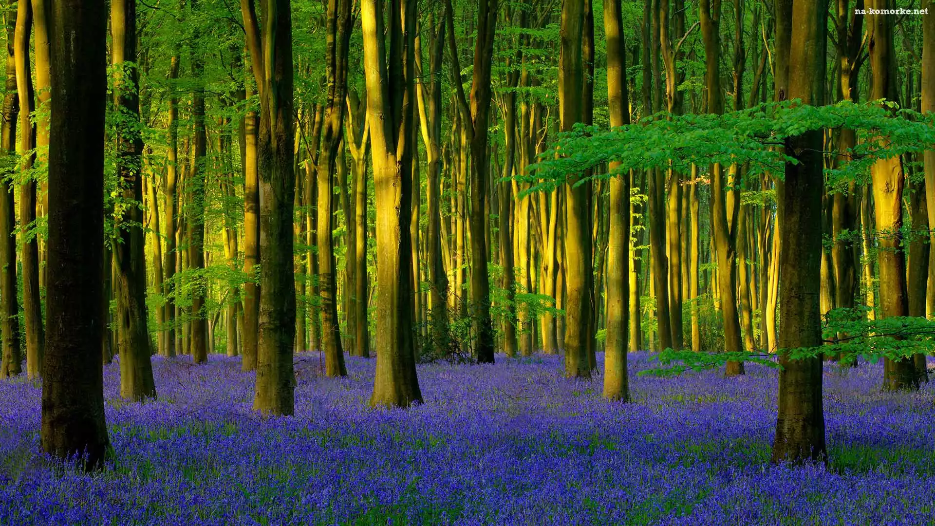 Wieś Micheldever, Anglia, Drzewa, Las, Światło słoneczne, Hrabstwo Hampshire, Hiacyntowiec zwyczajny, Micheldever Wood, Kwiaty na Komórkę |