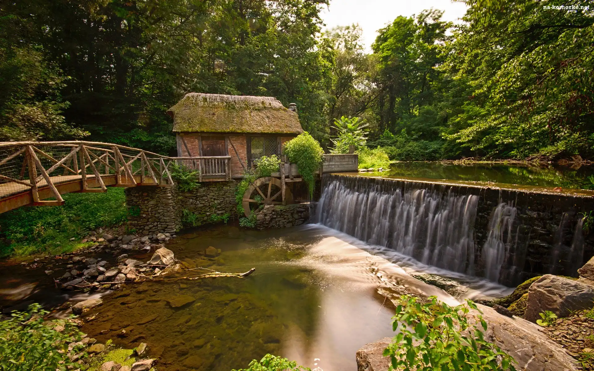 Kolory, Las, Jesienie Góry, Jezioro, Las Drzewo, Rzeka Krzew, Młyn, Woda, Drzewa, Kwitnący Zachód Słońca, Chmura, Las Oświetlony, Most, Woda Most, Góry Zachód Śłońca, Las, swat Młyn wodny, Las, Drzewa, Okna, Balkon, Kwiaty, Płot Las, Jesienią, Strumień Mosty, Seul, Korea Bariera, Francja, Wiadukt, Millau, Pylony Kanada, Góra, Las Rzeka, Jelenie, Las, Młyn