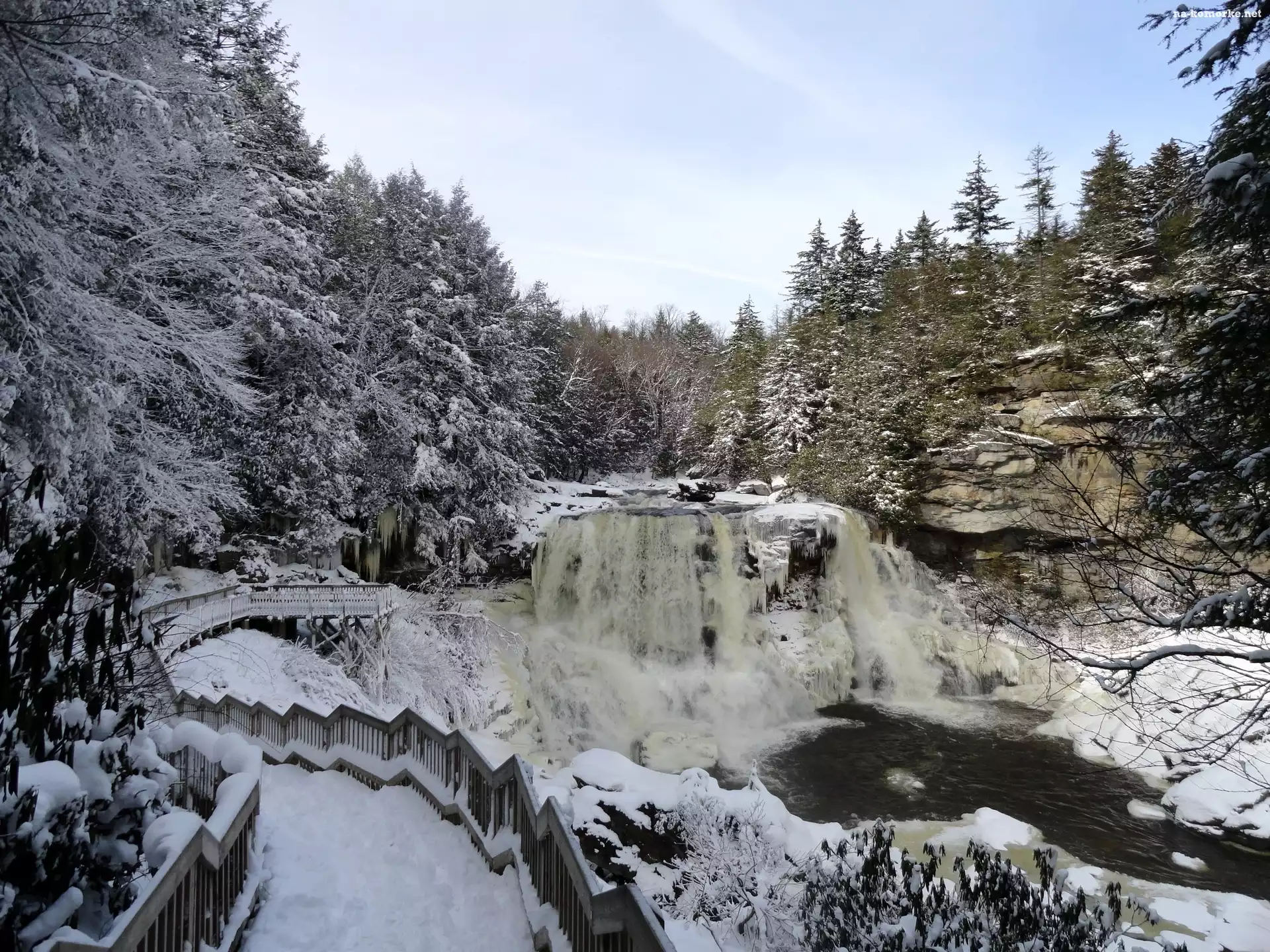 Las, Zima, Wodospad, Rzeka na Komórkę