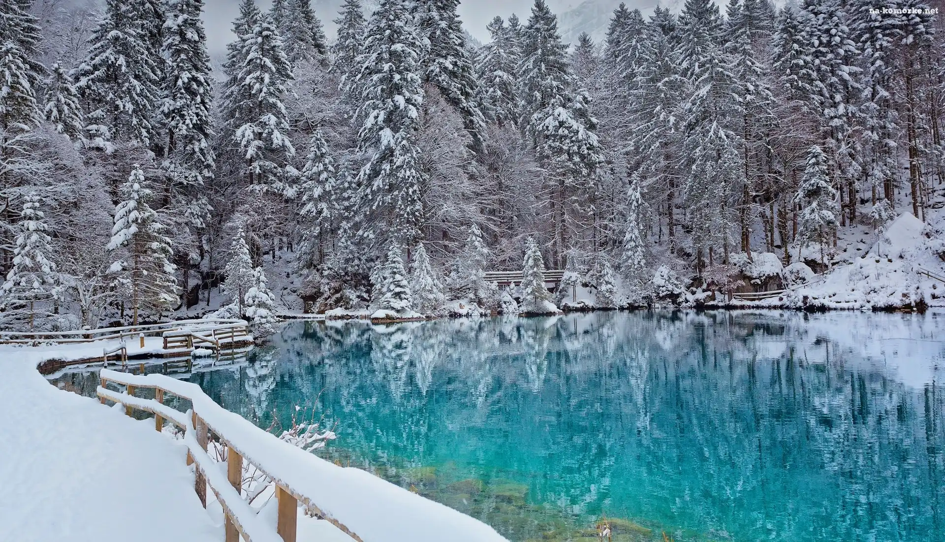 Śnieg, Zima, Jezioro, Las, Ogrodzenie na Komórkę