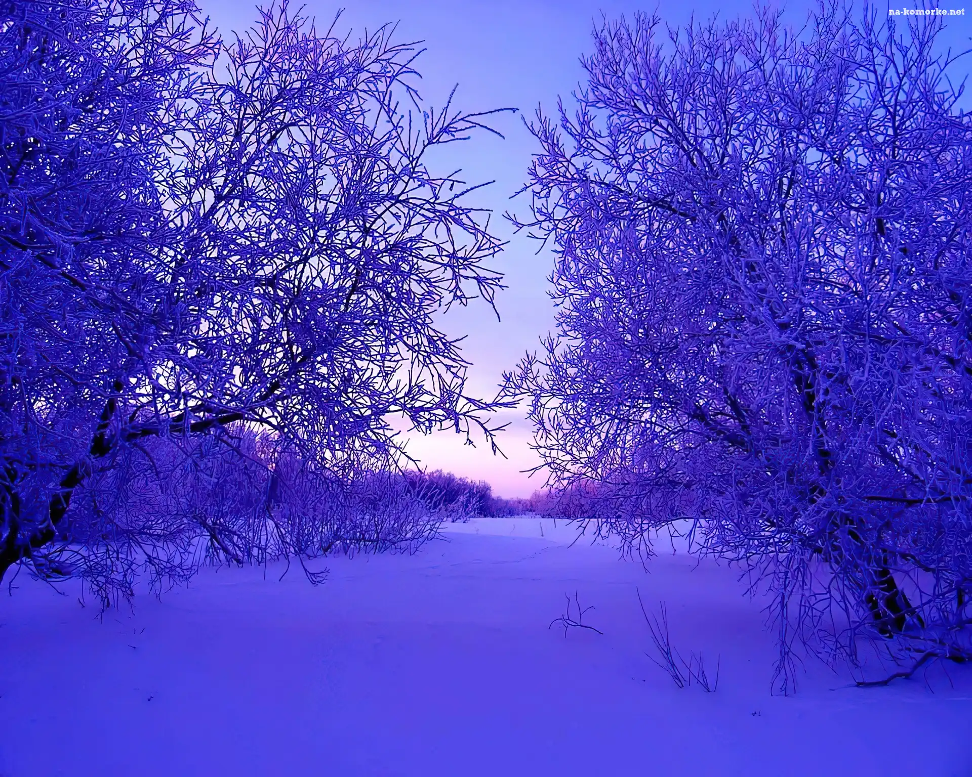 Las, Wieczór, Śnieg, Zima, Drzewa na Komórkę