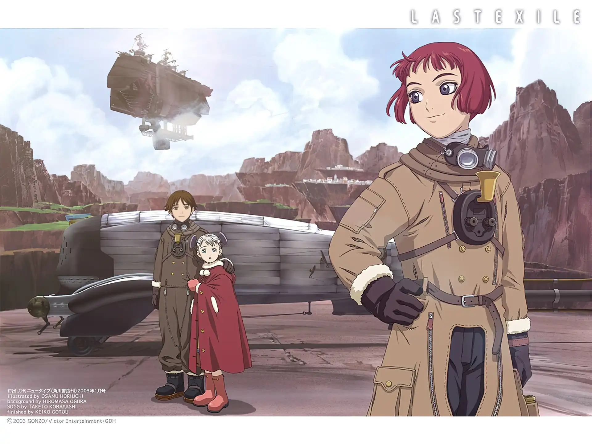 Last Exile, pojazd, skały, ludzie na Komórkę