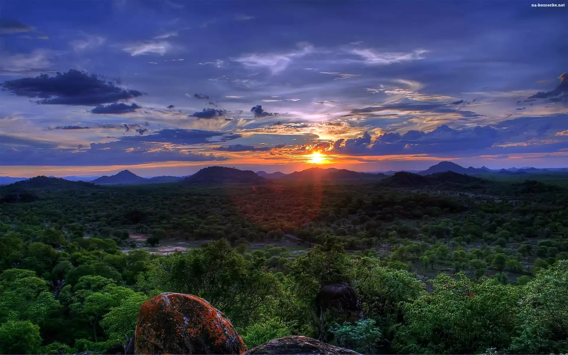 Lasy, Słońca, Chmury, Zachód na Komórkę