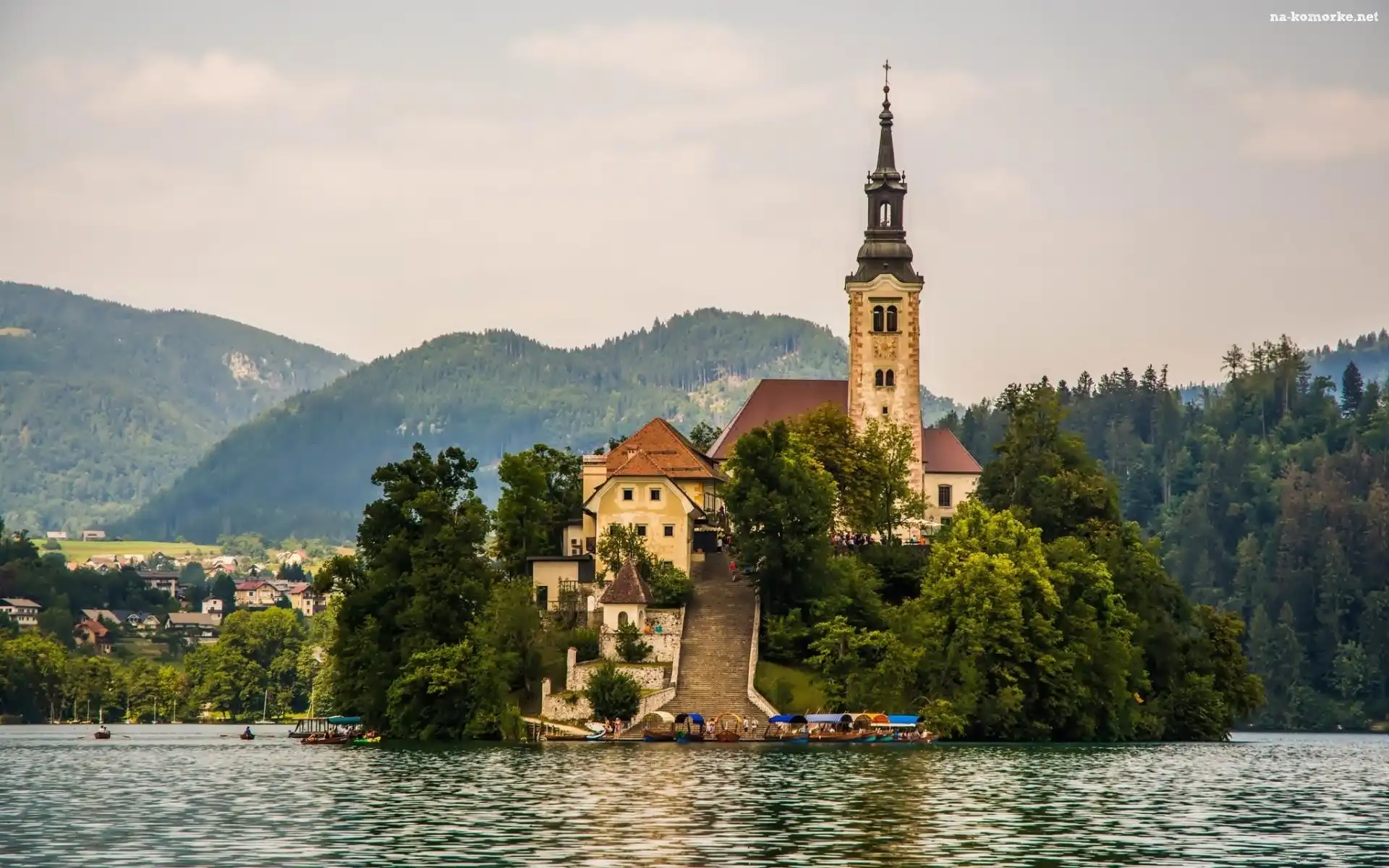 Jezioro, Lasy, Słowenia, Bled, Wyspa, Kościół, Góry na Komórkę