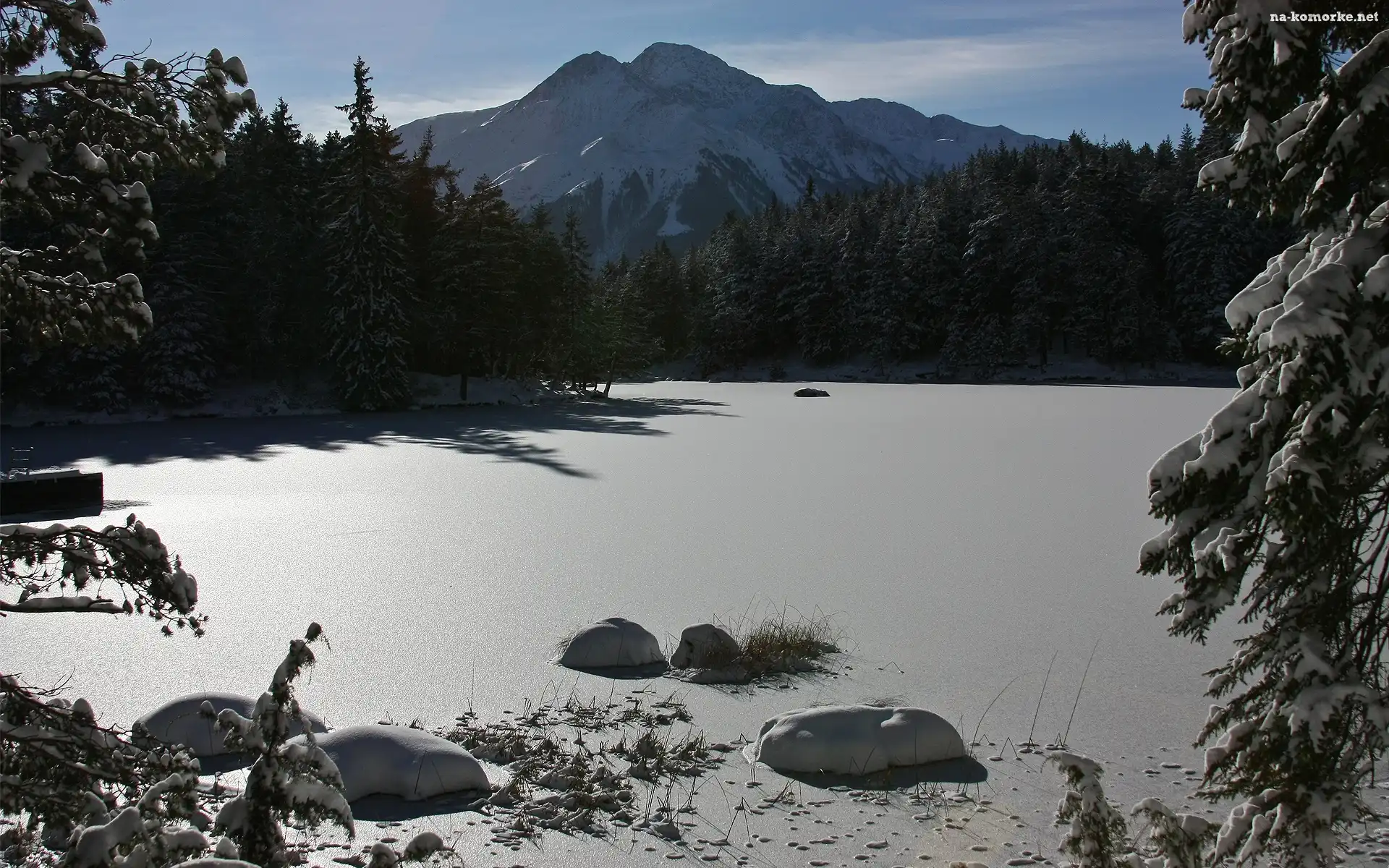 Lasy, Rzeka, Zima, Śnieg, Góry na Komórkę