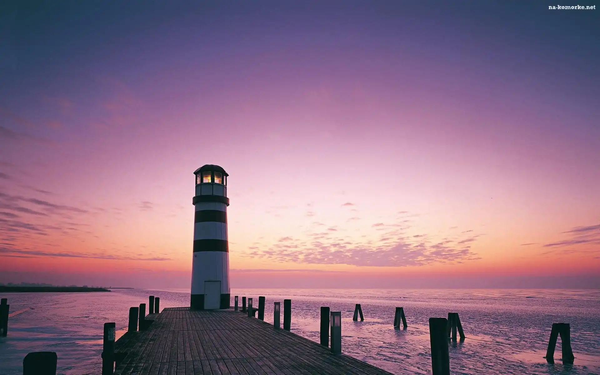 latarnia morska, zachód słońca, lato, morze na Komórkę