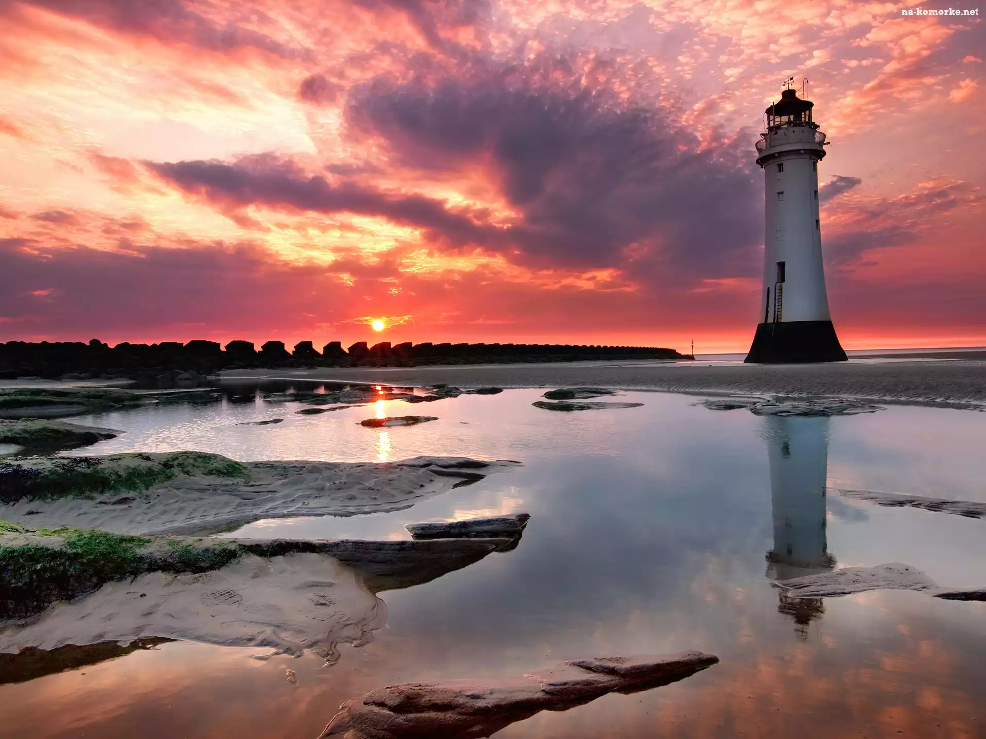 Latarnia, Słońca, Morska, Zachód na Komórkę