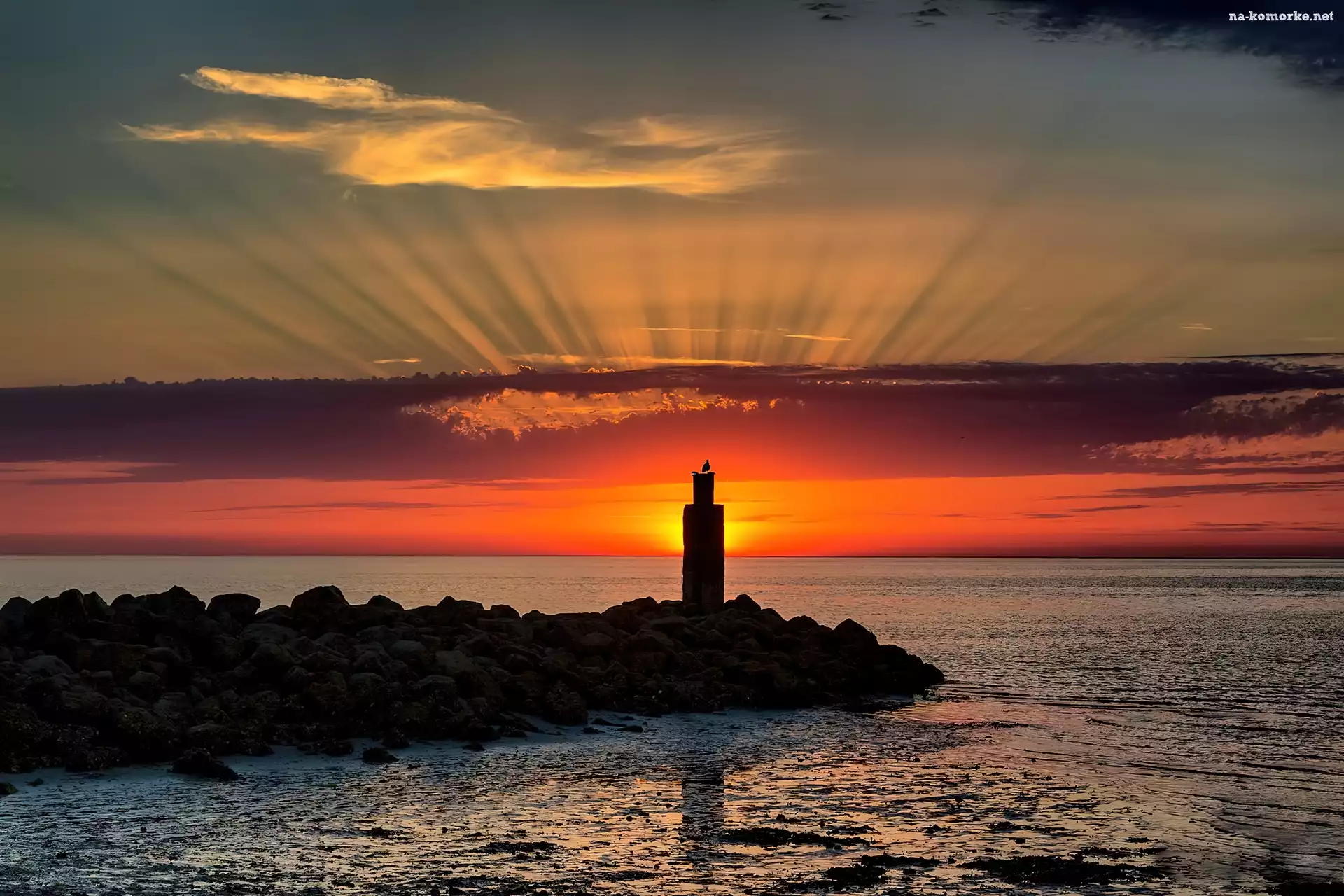 Latarnia, Zachód, Słońca, Promienie, Morze na Komórkę