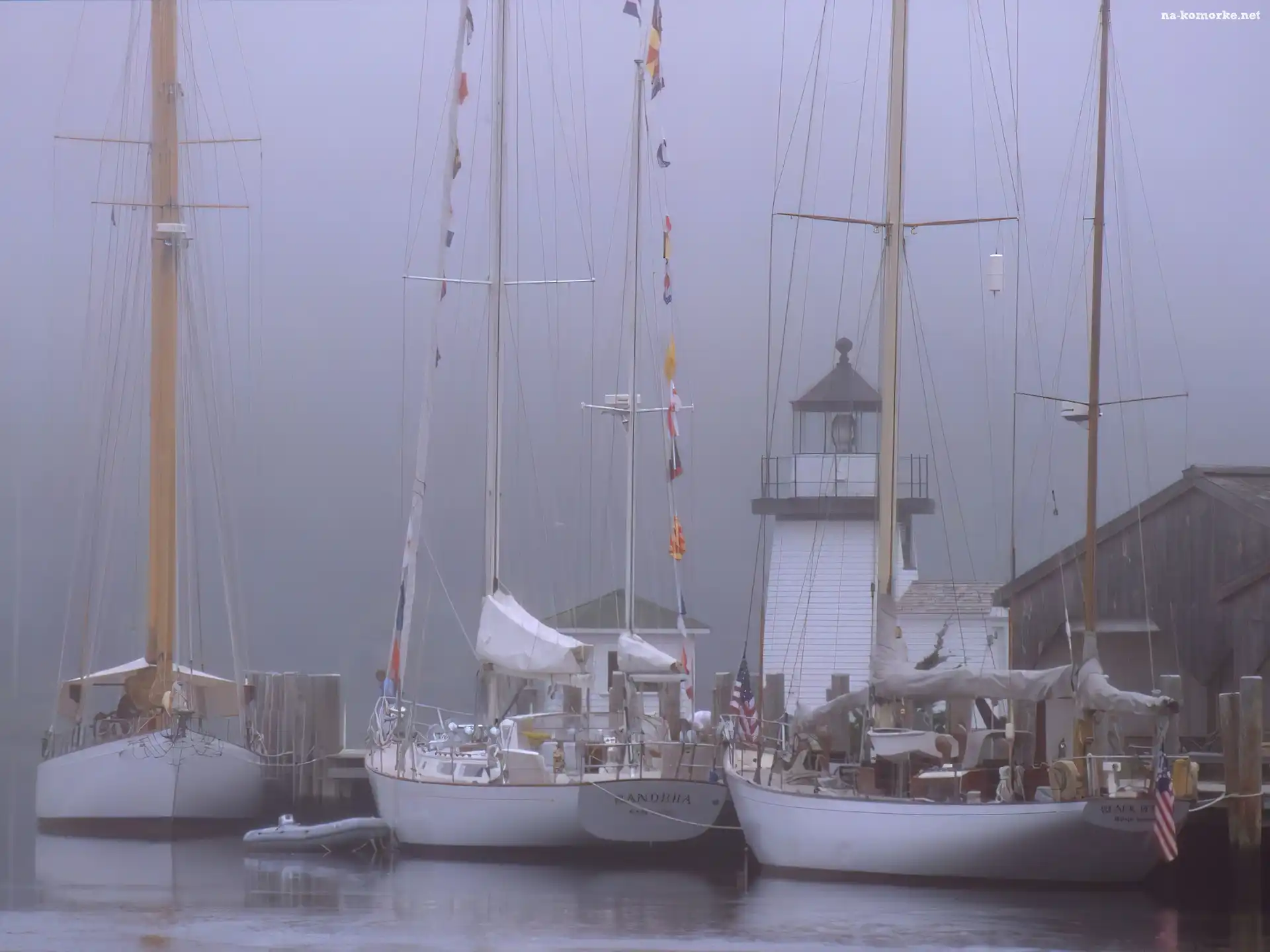 Żeglarstwo, Przystań, Jachty, Latarnia morska na Komórkę