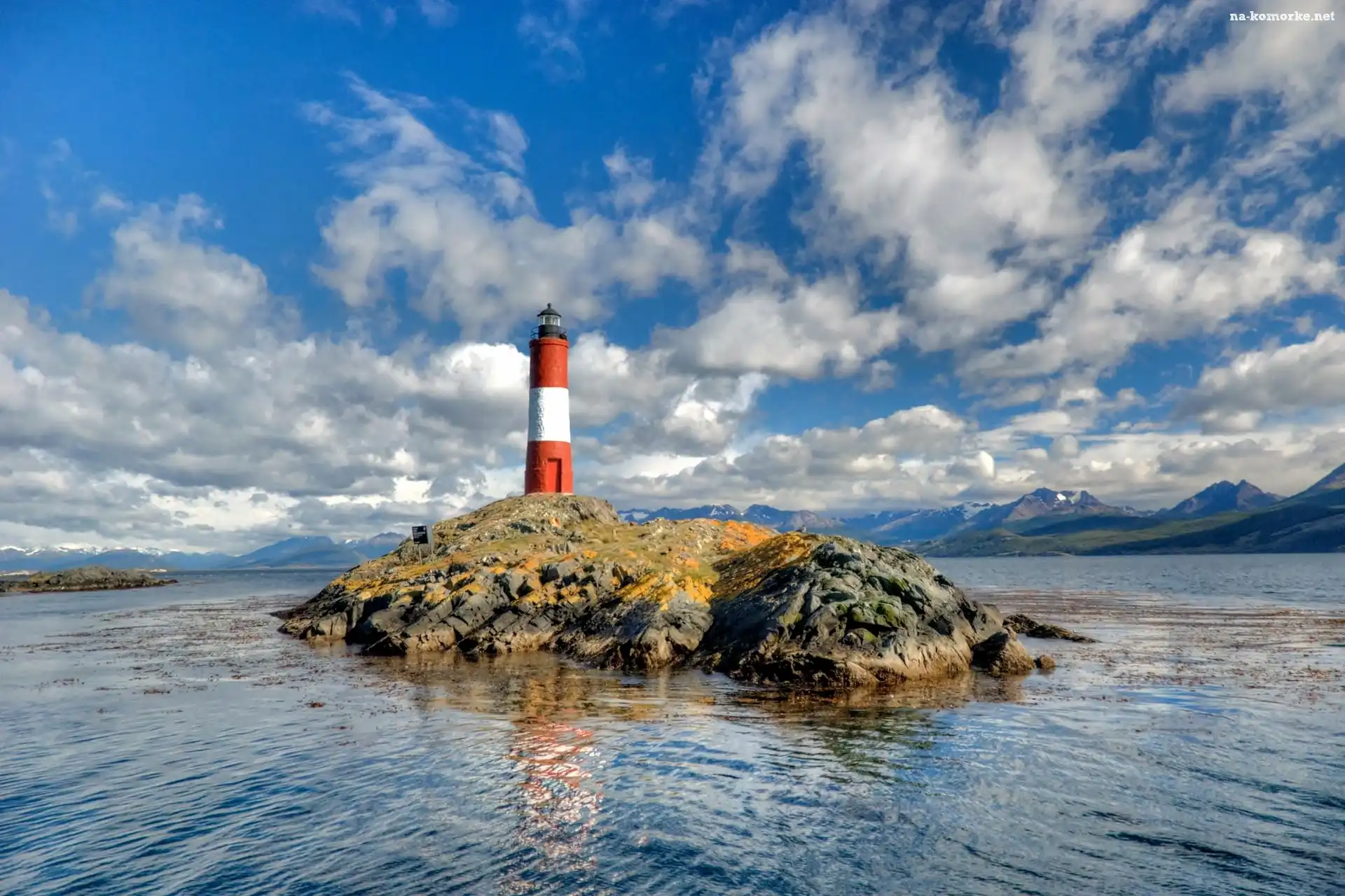 Latarnia, Skalista, Morze, Obłoki, Wysepka, Morska na Komórkę
