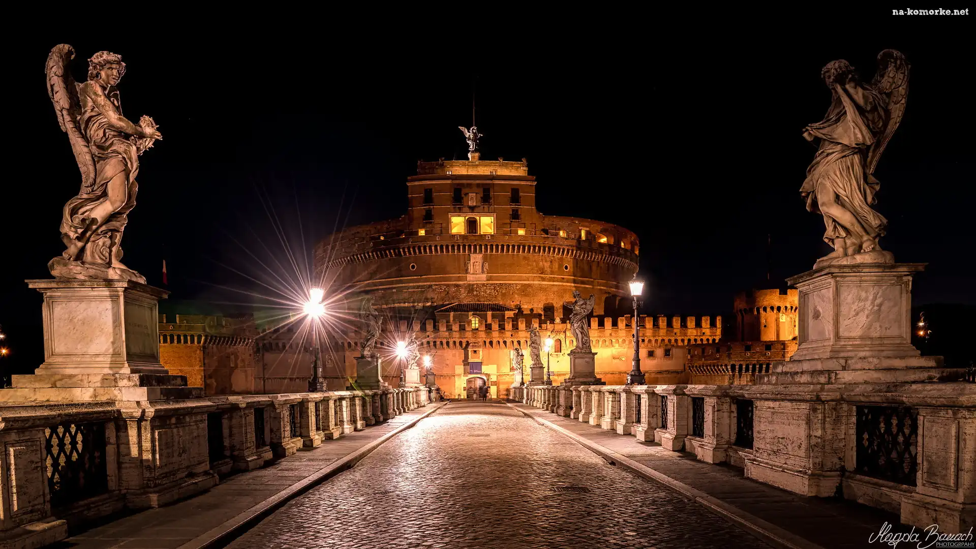 Grobowiec, Zamek Świętego Anioła, Latarnie, Most św Anioła, Włochy, Mauzoleum Hadriana, Rzym, Posągi, Noc na Komórkę |