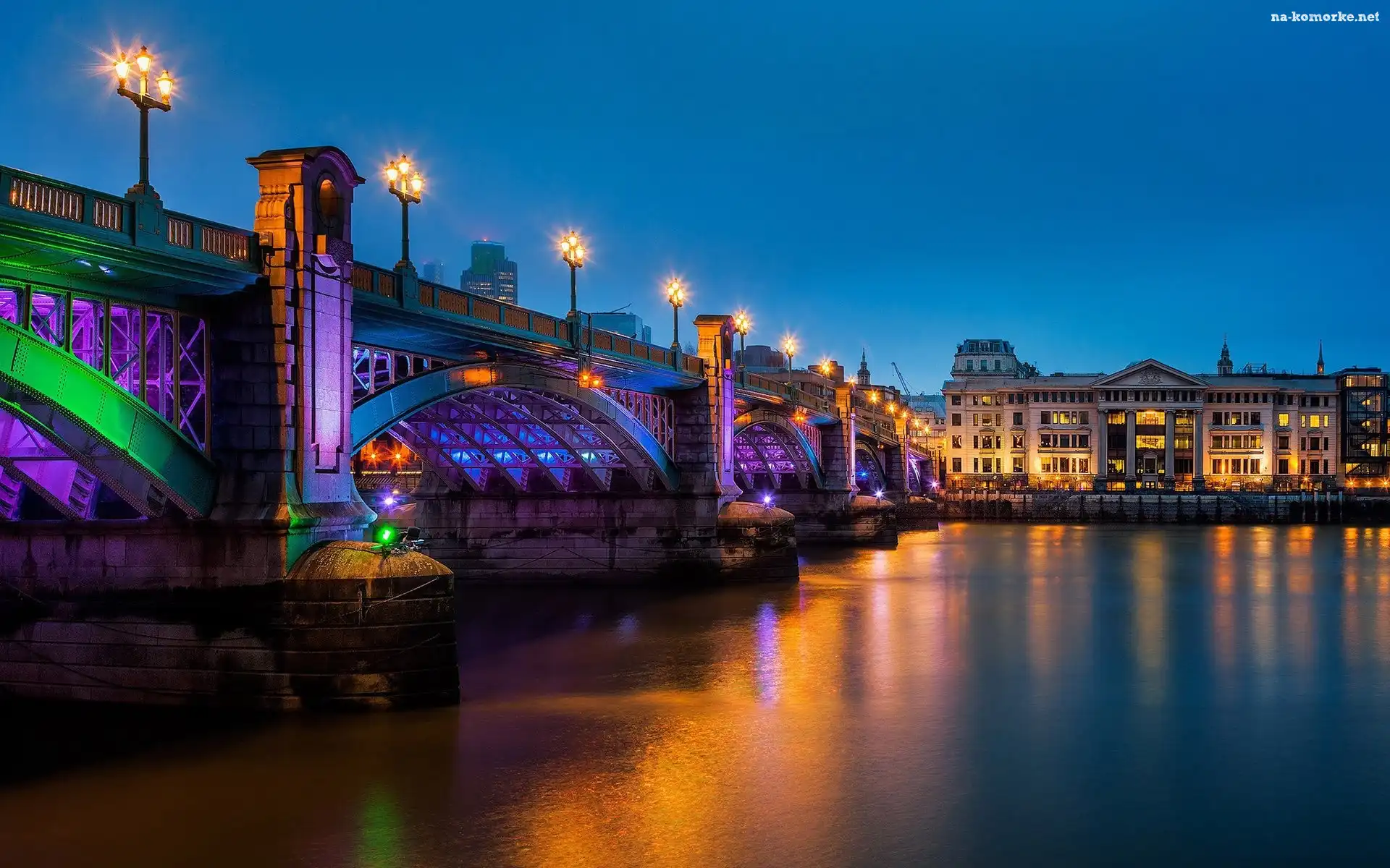 Latarnie, Podświetlany, Most, Budynku, Rzeka, Gmach na Komórkę