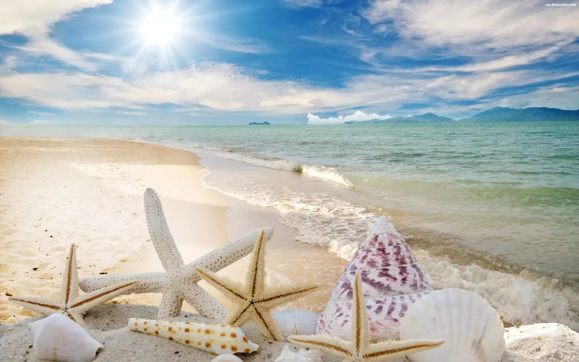 Lato, Muszelki, Niebo, Morze, Plaża na Komórkę