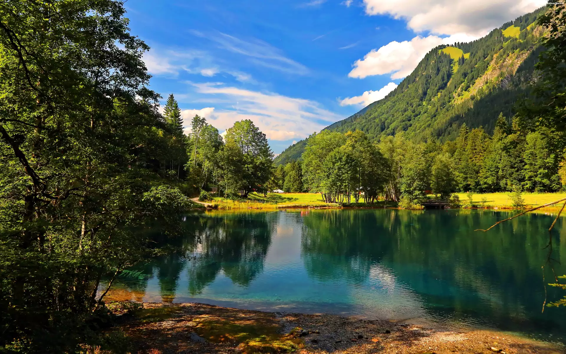 Lato, Jezioro, Góry, Niebo, Obłoki na Komórkę