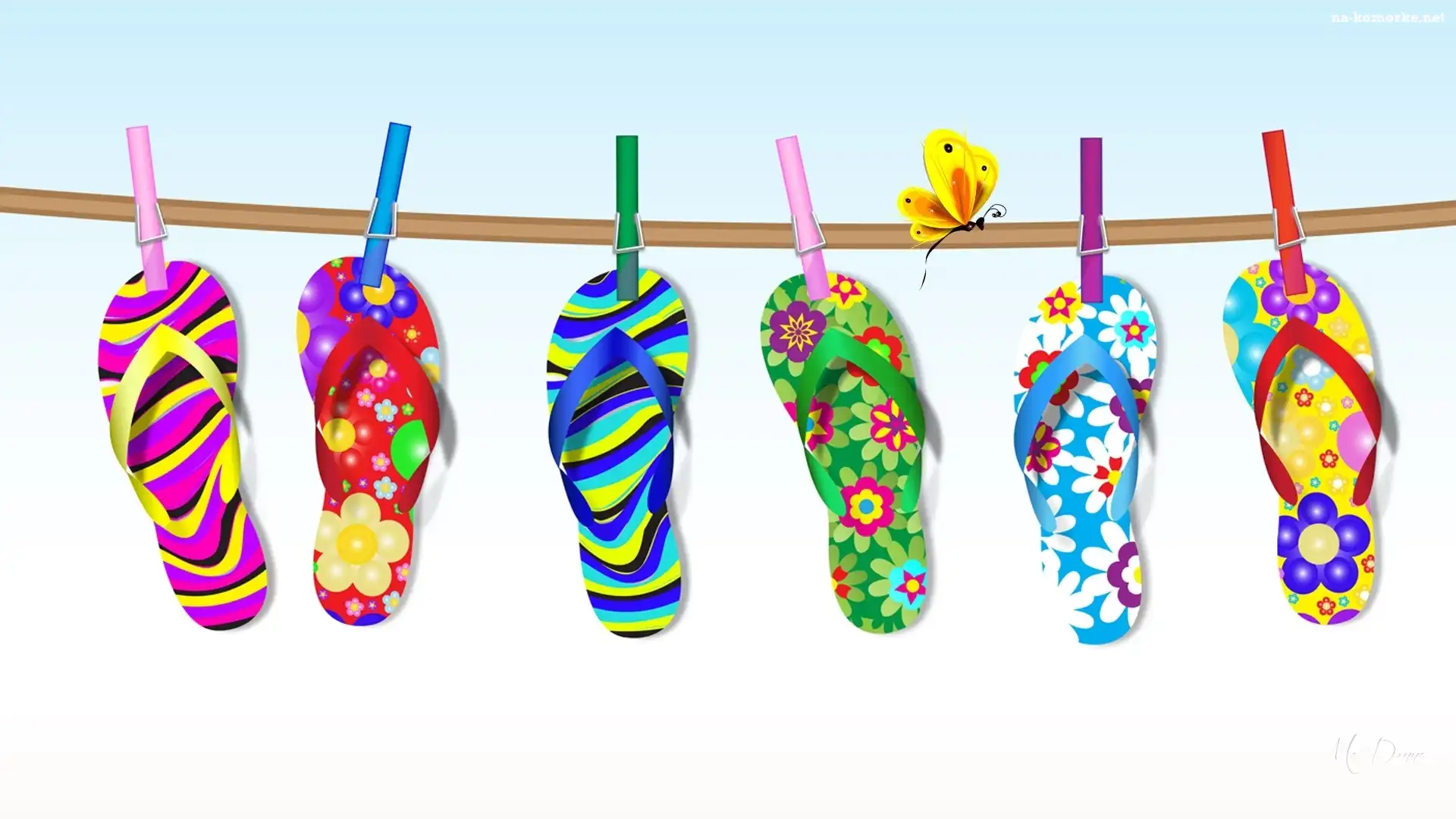 Lato, Klapki, Klamerki, Sznur, Motylek na Komórkę