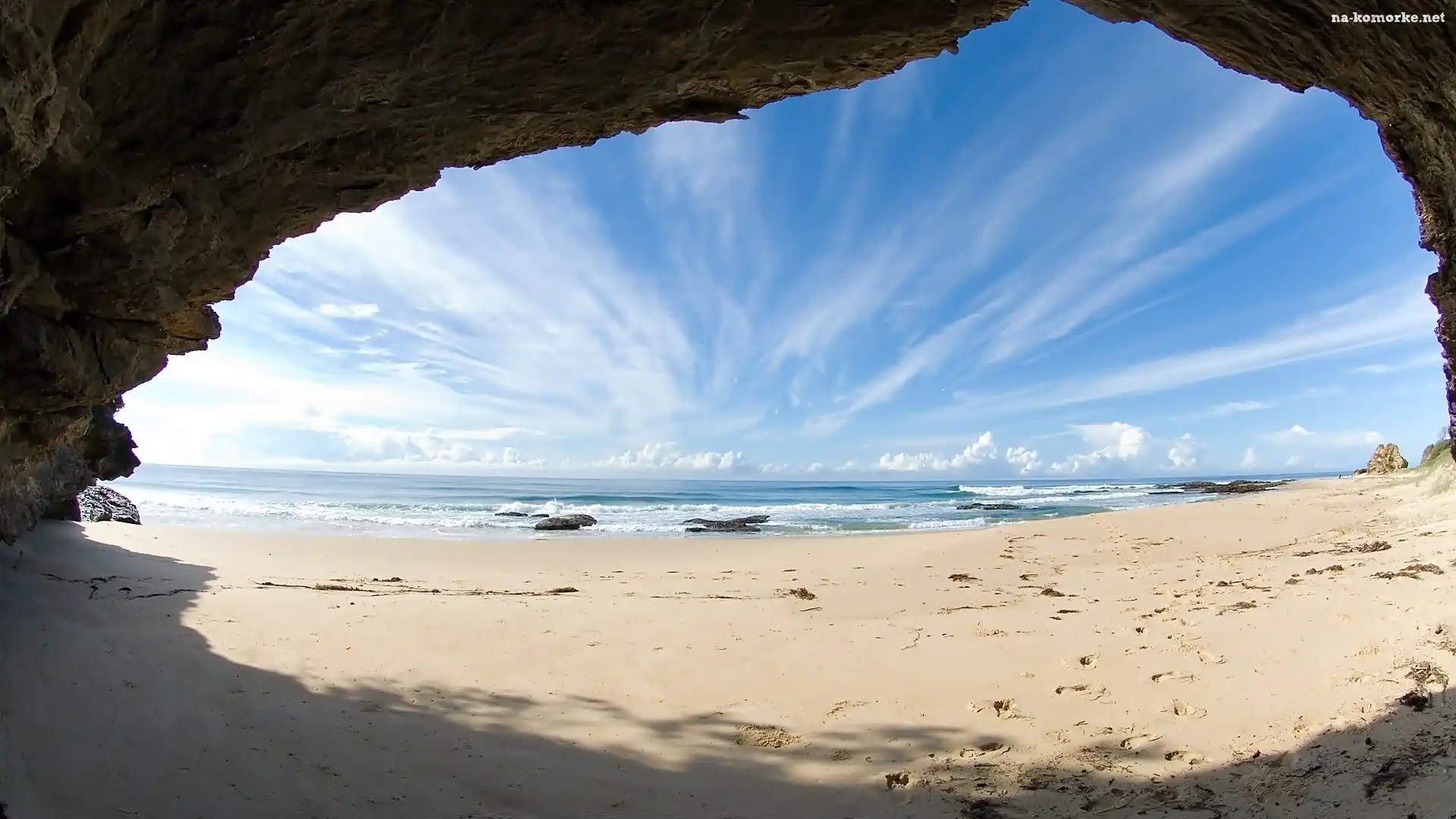 Lato, Jaskinia, Piasek, Woda, Morze na Komórkę