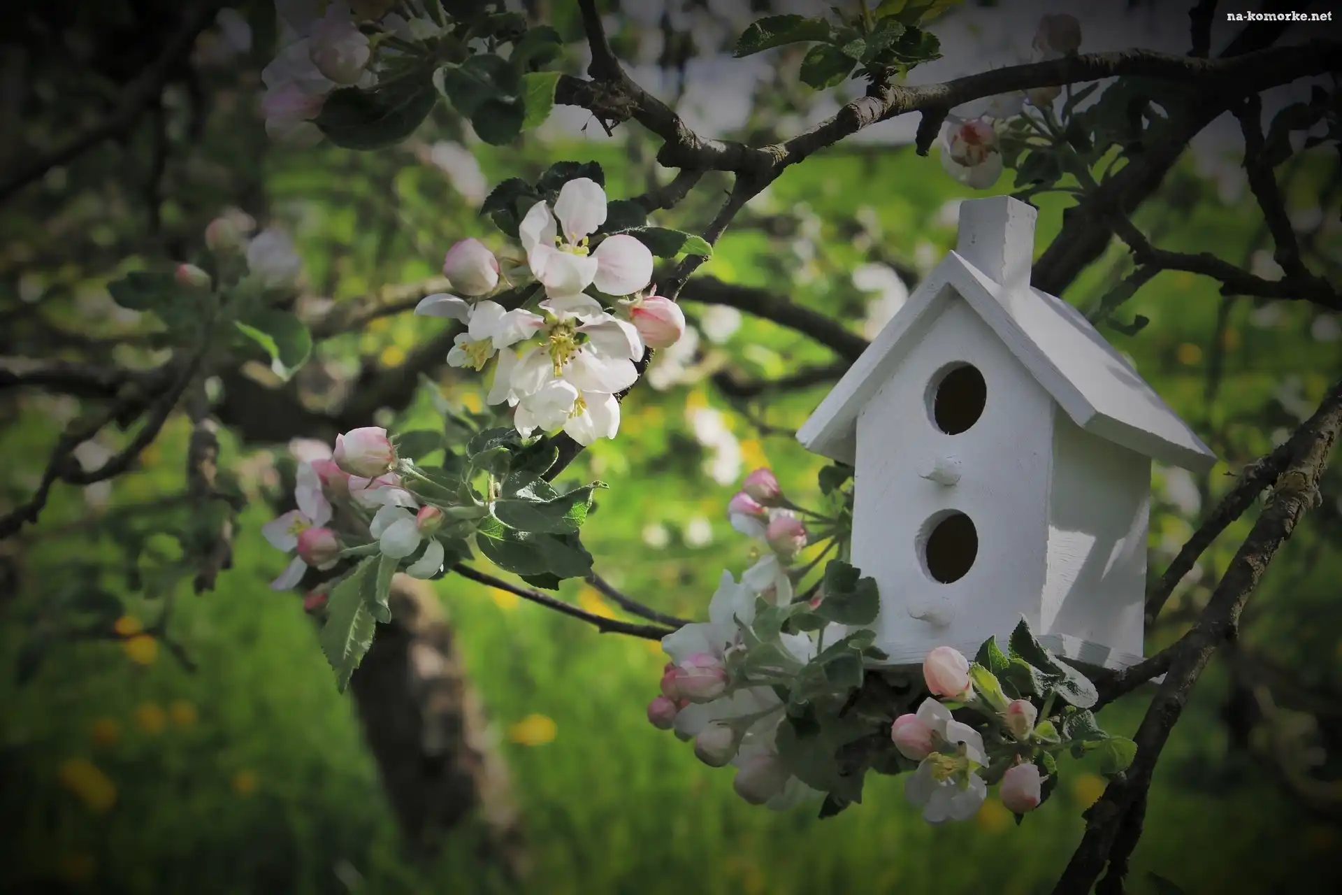Budka lęgowa, Gałązki, Drzewo owocowe, Białe, Kwiatki na Komórkę
