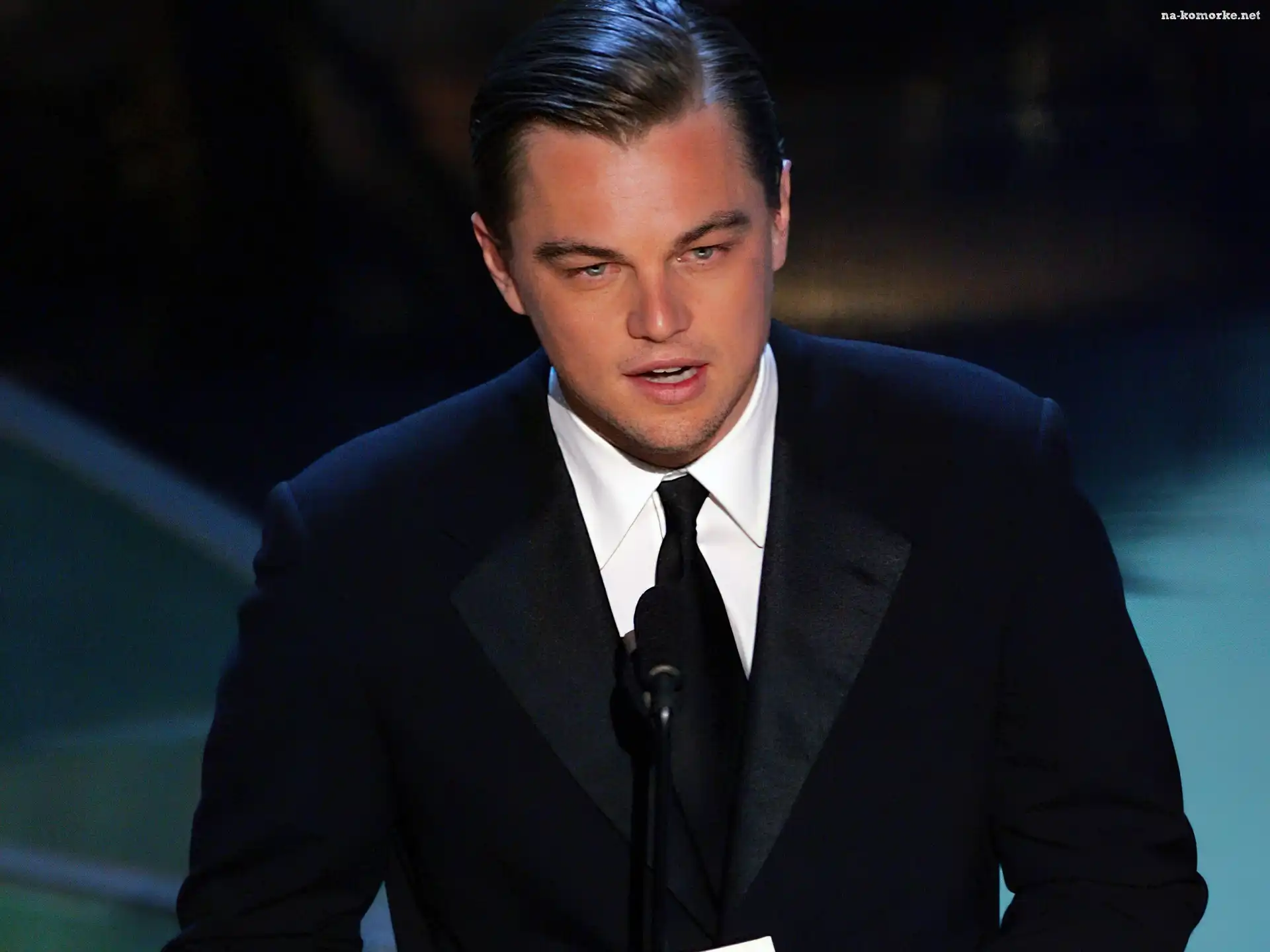 Leonardo DiCaprio, czarny garnitur na Komórkę
